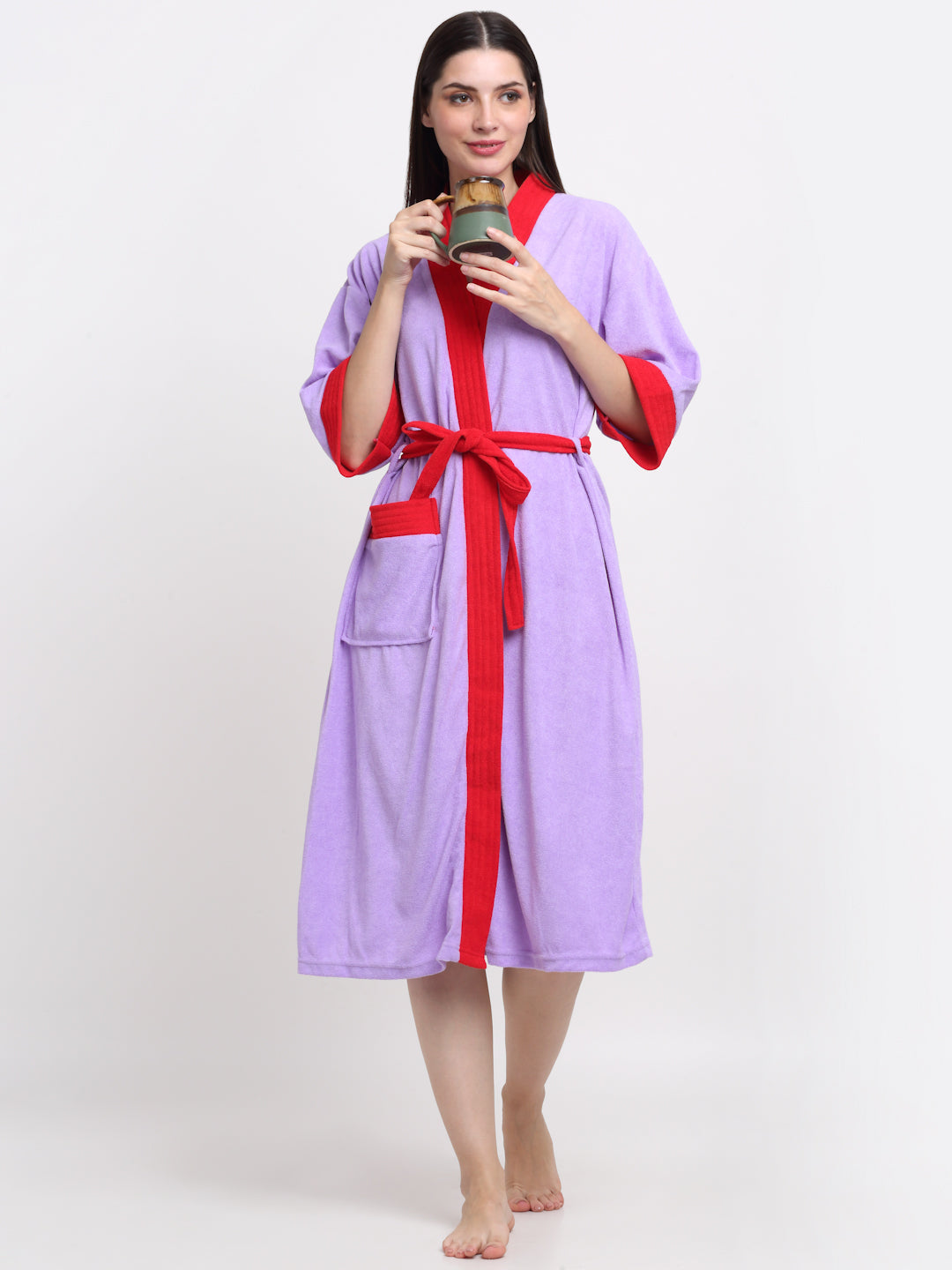 Lilac & Red Bathrobe – Soft Lounge Robe in Eye-Catching Colors
