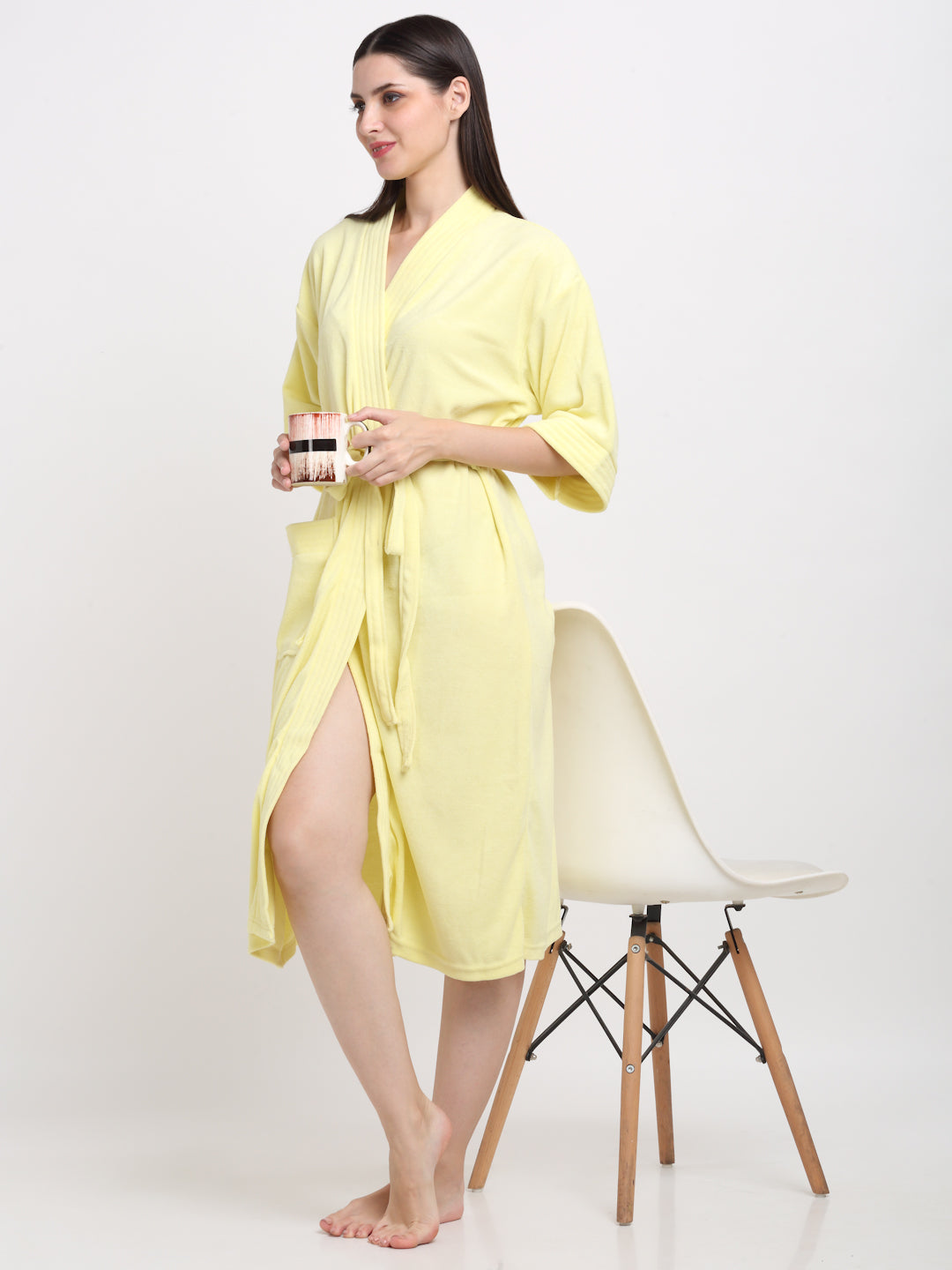 Bright Lemon Yellow Bathrobe – Soft Micro Terry Lounge Comfort