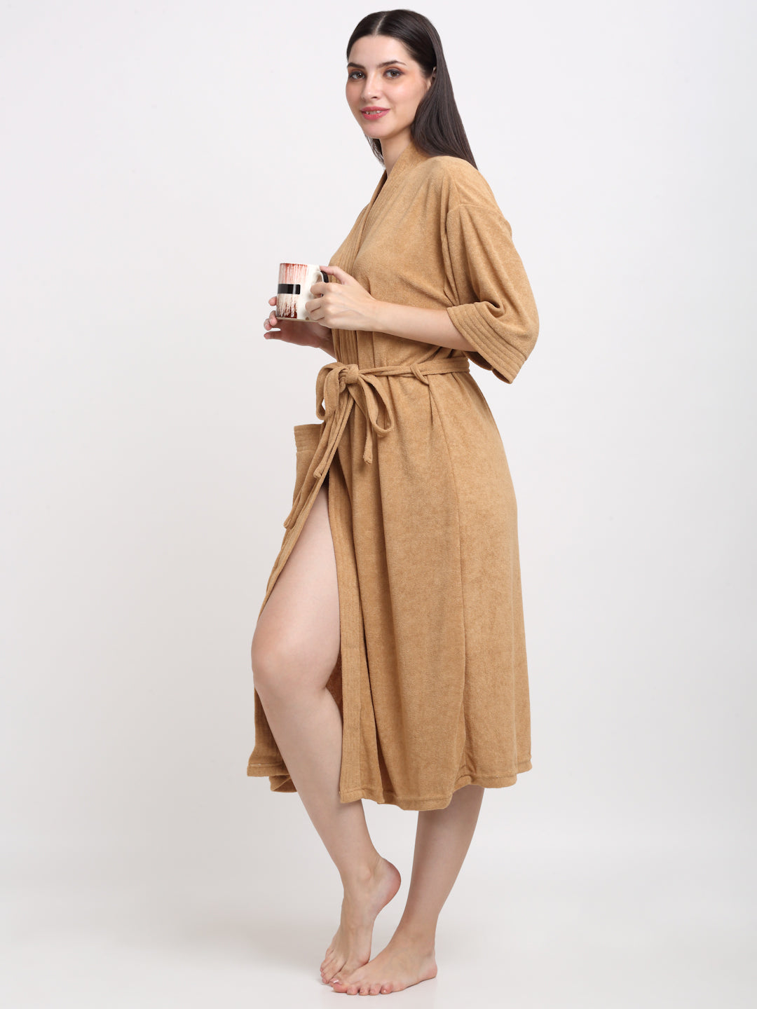 Camel Brown Terry Bathrobe – Soft & Durable for Daily Lounging