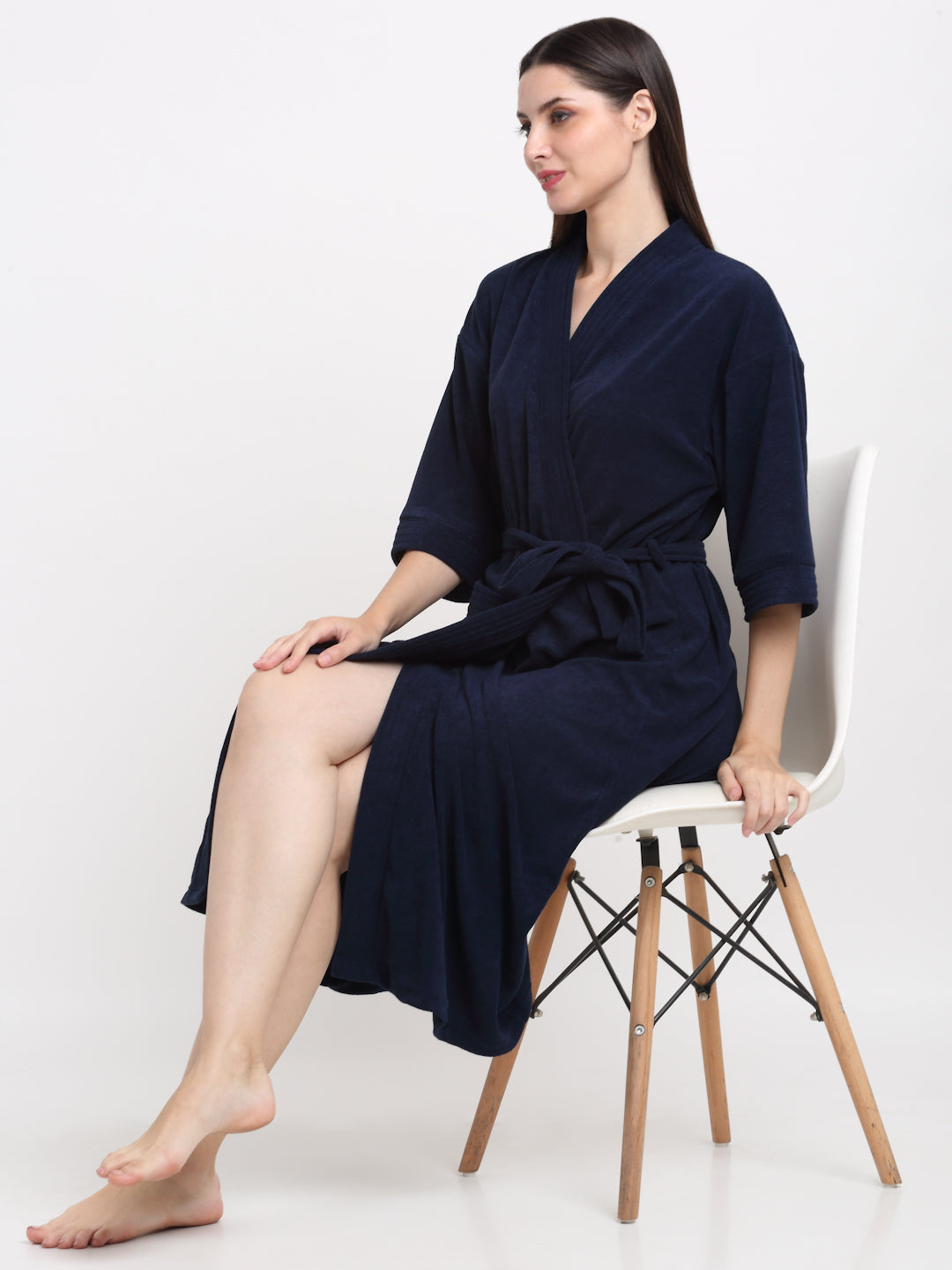 Classic Navy Bathrobe – Lightweight Terry, Modern Comfort