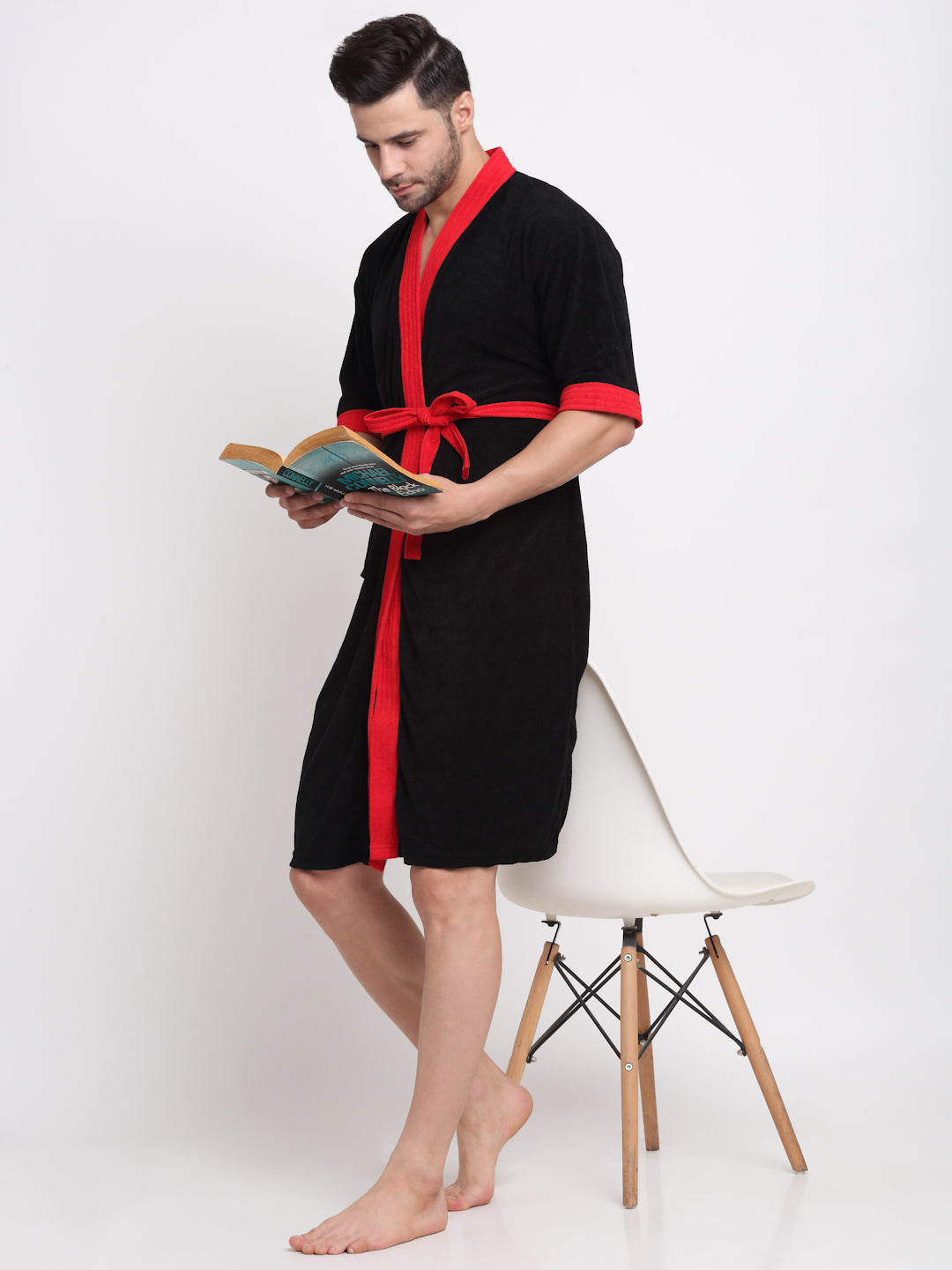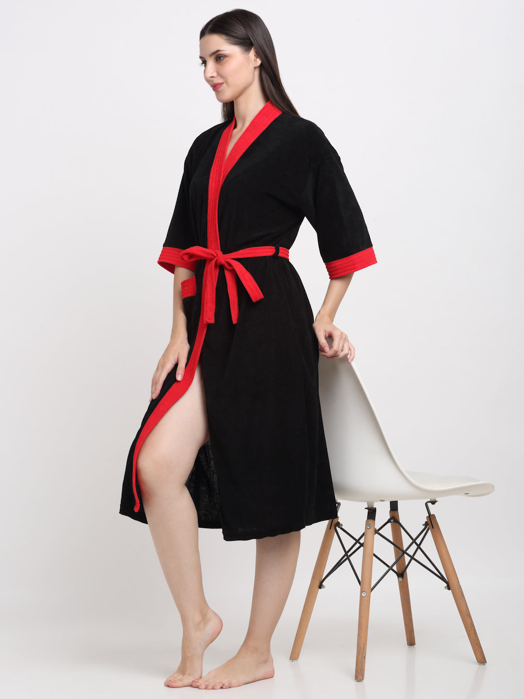 Black & Red Everyday Bathrobe – Stylish Comfort with Kimono Fit