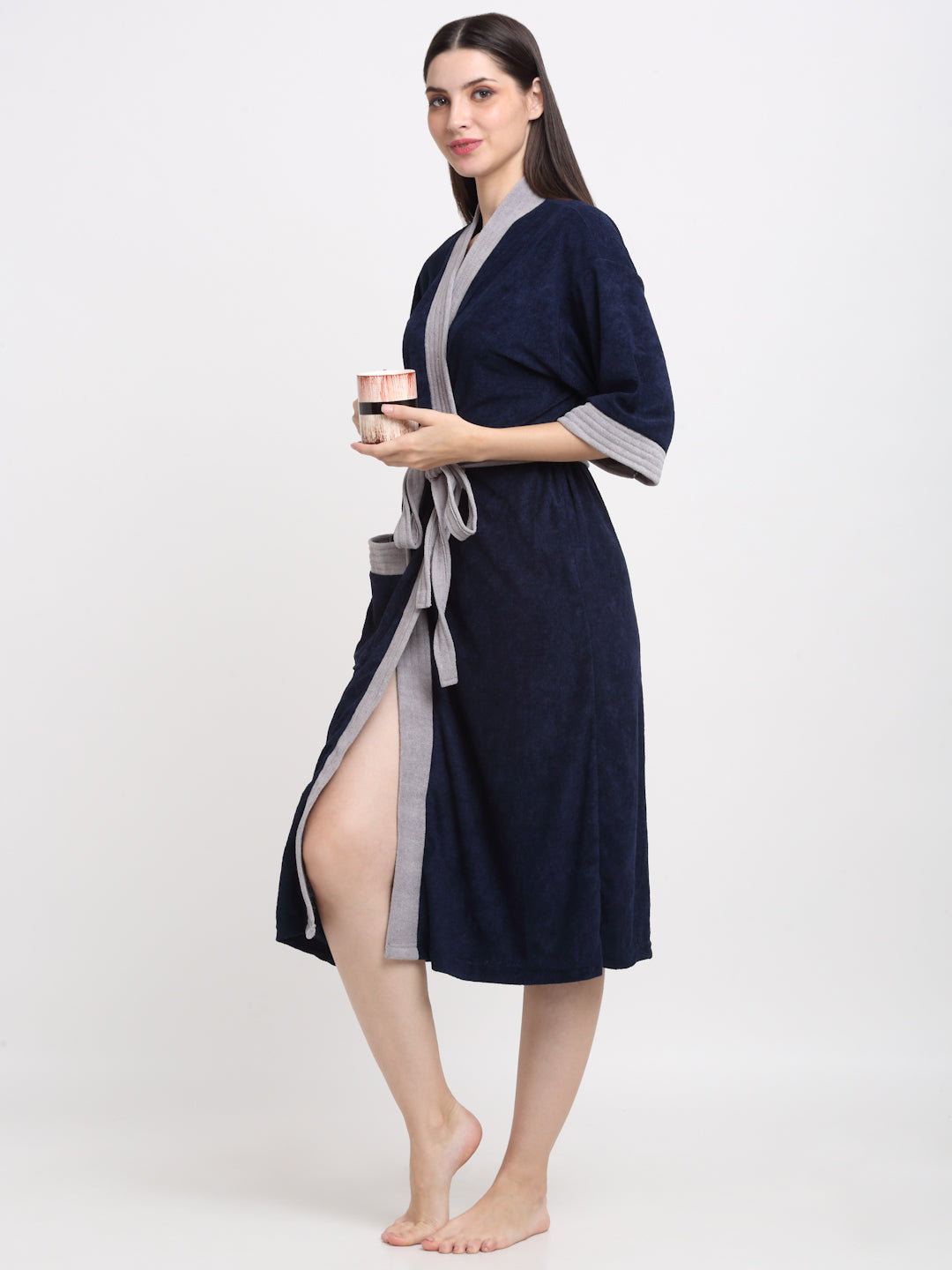 Indigo & Navy Terry Robe – Subtle Color Mix, Everyday Use