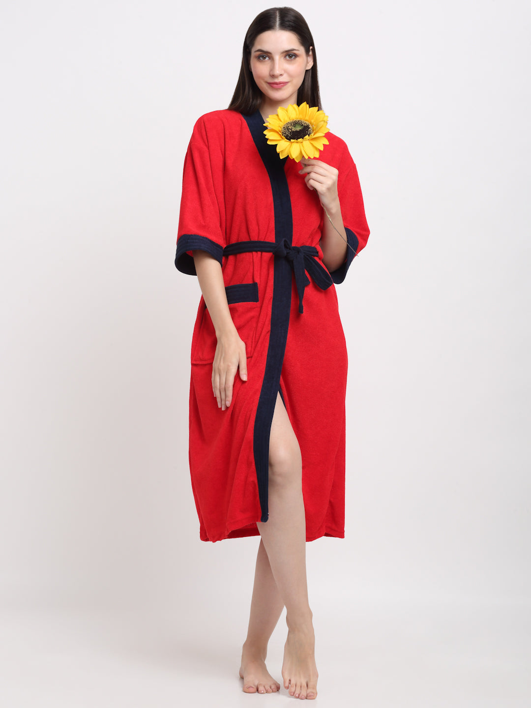 Red & Navy Unisex Bathrobe – Soft Micro Terry, Bold Look