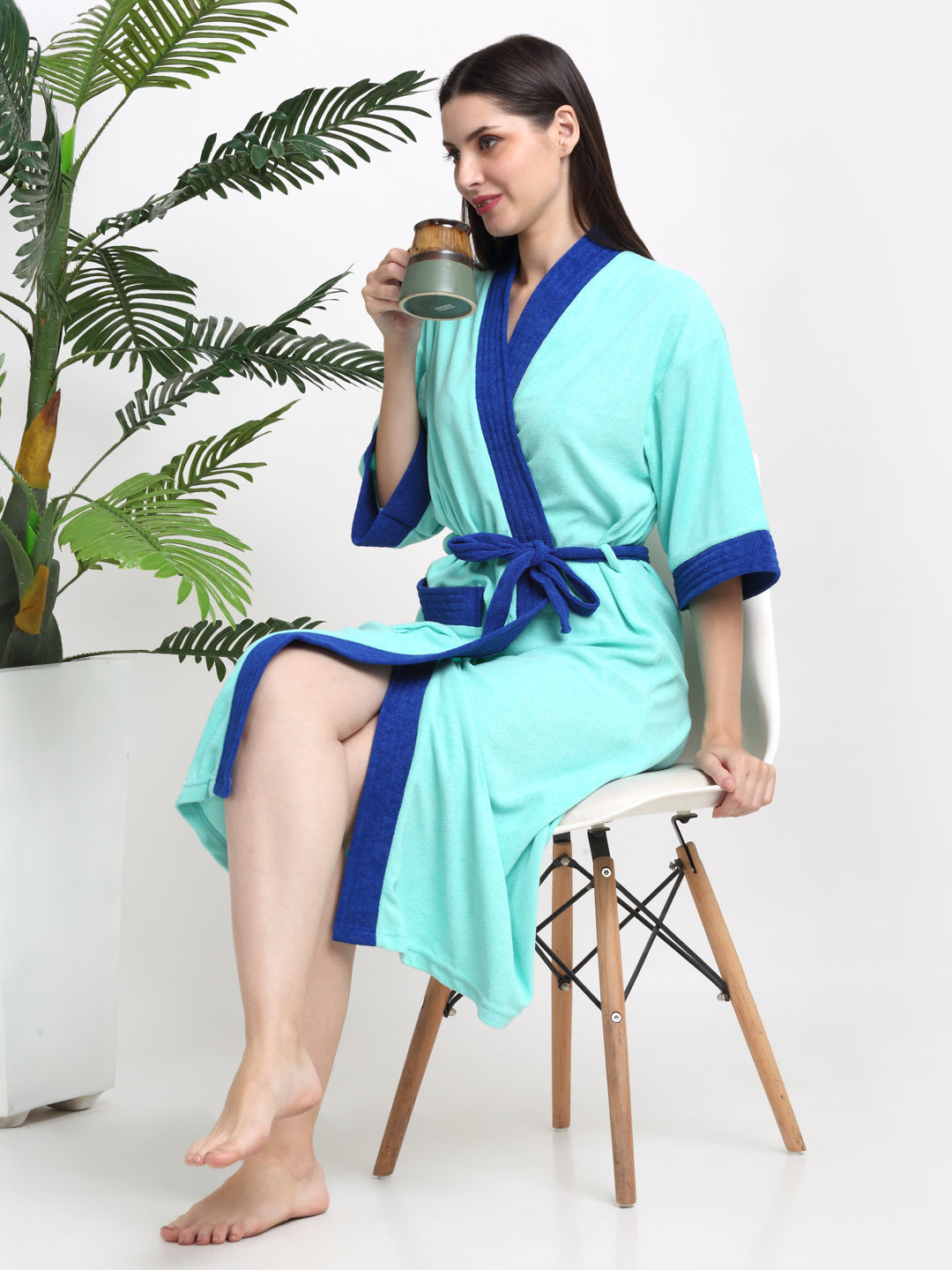 Green & Indigo Terry Robe – Vibrant Colors with Kimono Flair