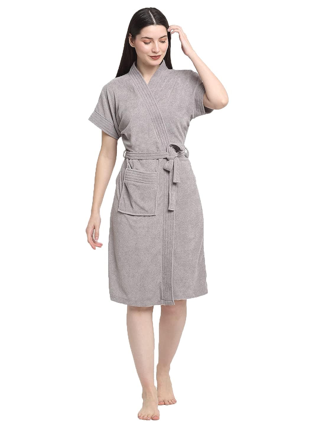 Ash Grey Unisex Bathrobe – Soft Touch with Kimono Cut