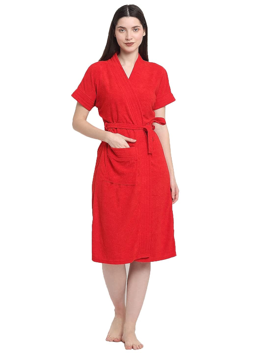Micro Terry Bathrobe - Red | Plush Feel, High Absorbency