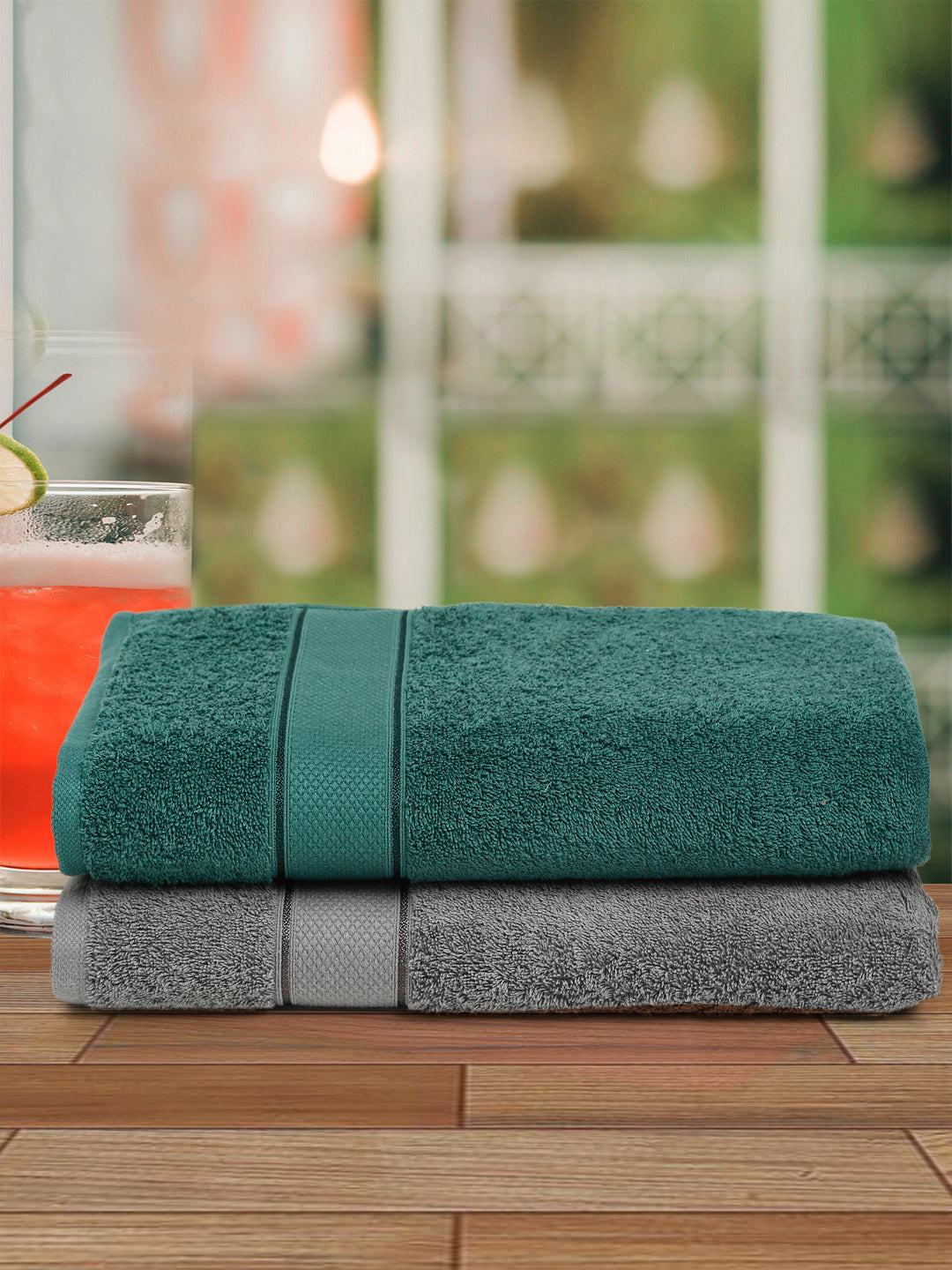 Grey & Dark Green 2 Pc Solid 525 GSM Bath Towel Set