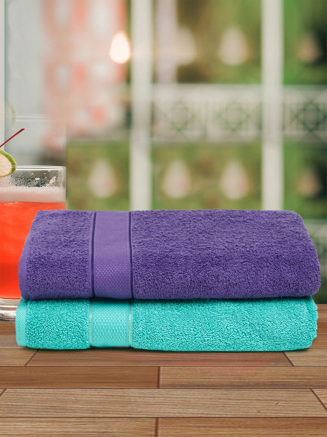 Sea Green & Violet 2 Pc Solid 525 GSM Bath Towel Set