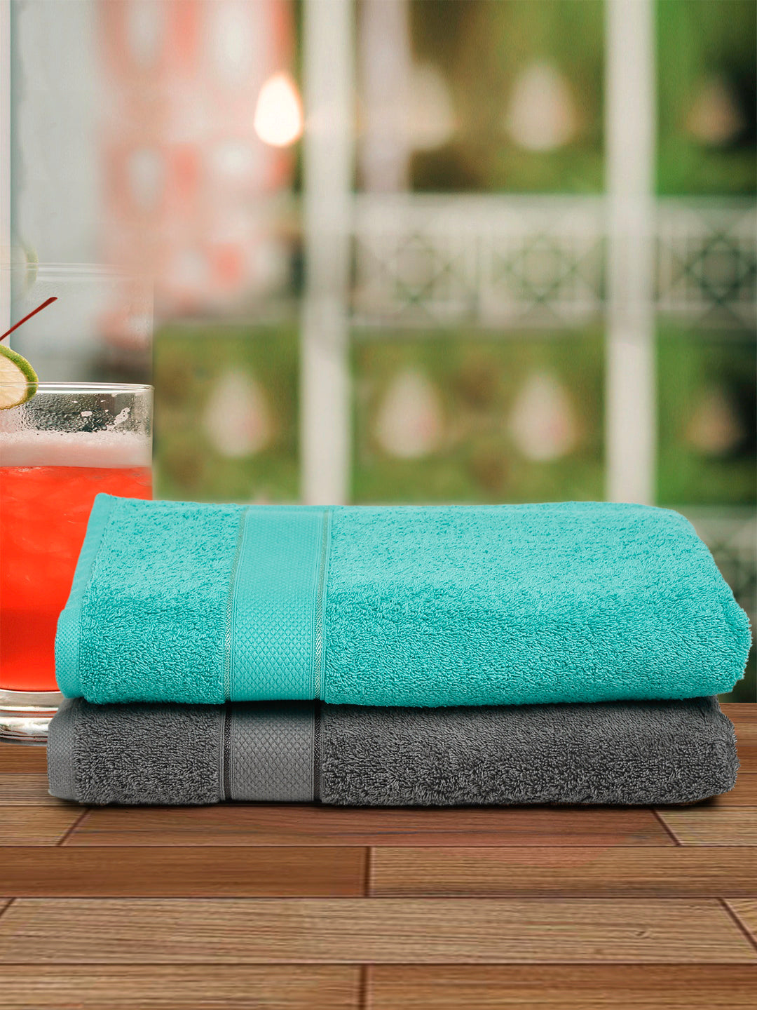 Grey & Sea Green 2 Pc Solid 525 GSM Bath Towel Set