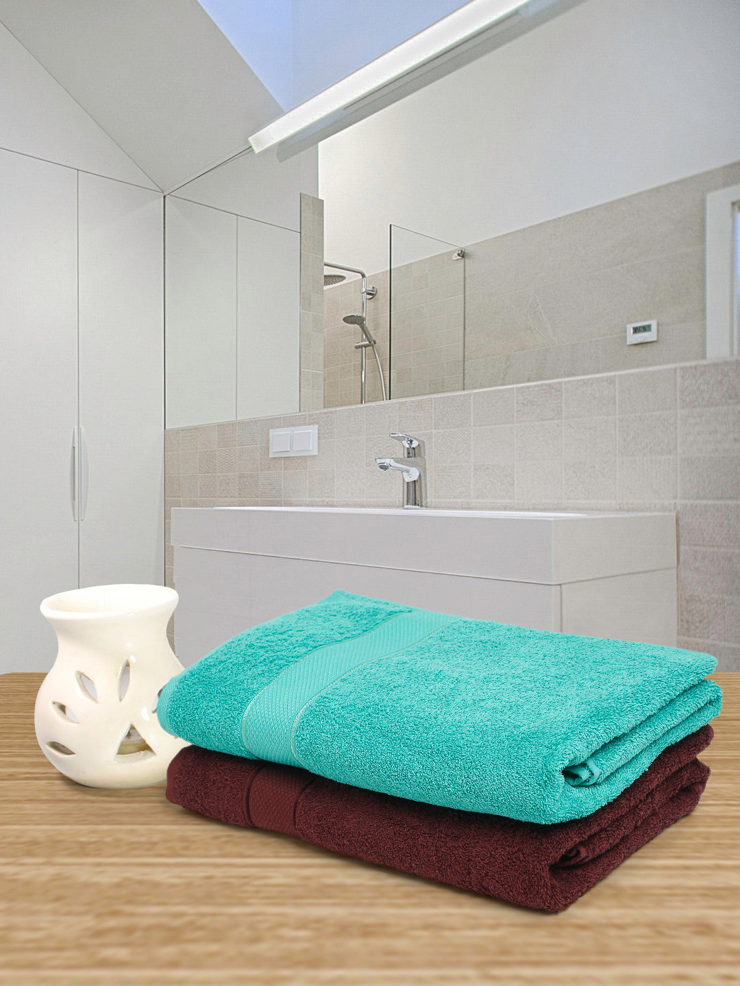 Wine & Sea Green 2 Pc Solid 525 GSM Bath Towel Set