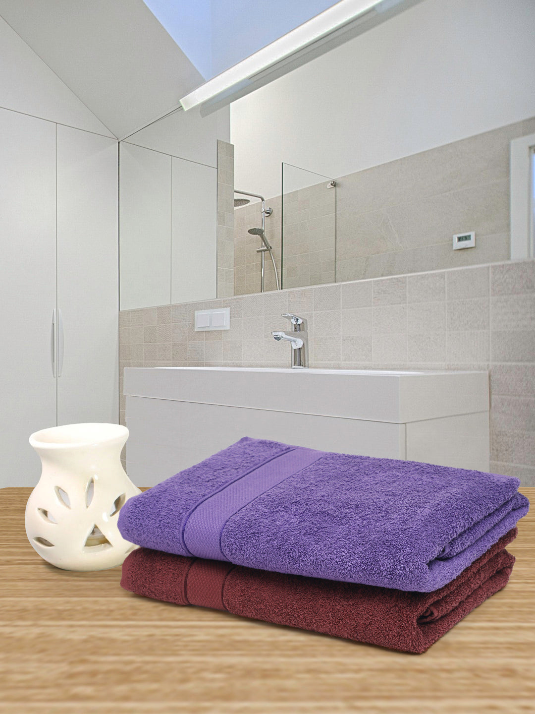 Wine & Violet 2 Pc Solid 525 GSM Bath Towel Set