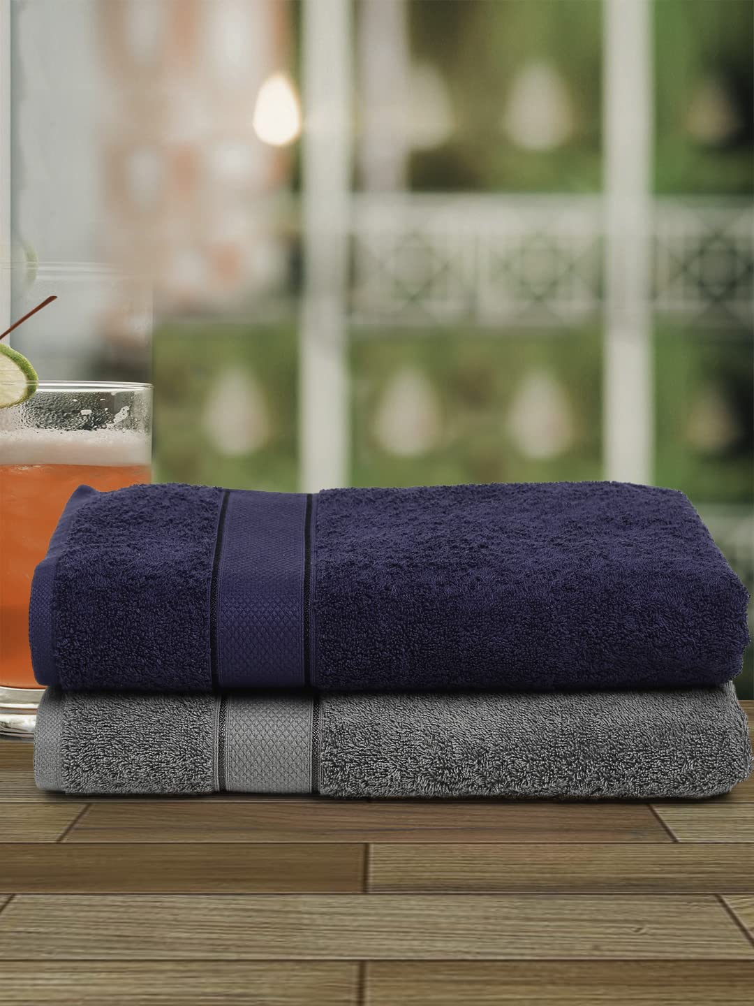 Grey & Navy 2 Pc Solid 525 GSM Bath Towel Set