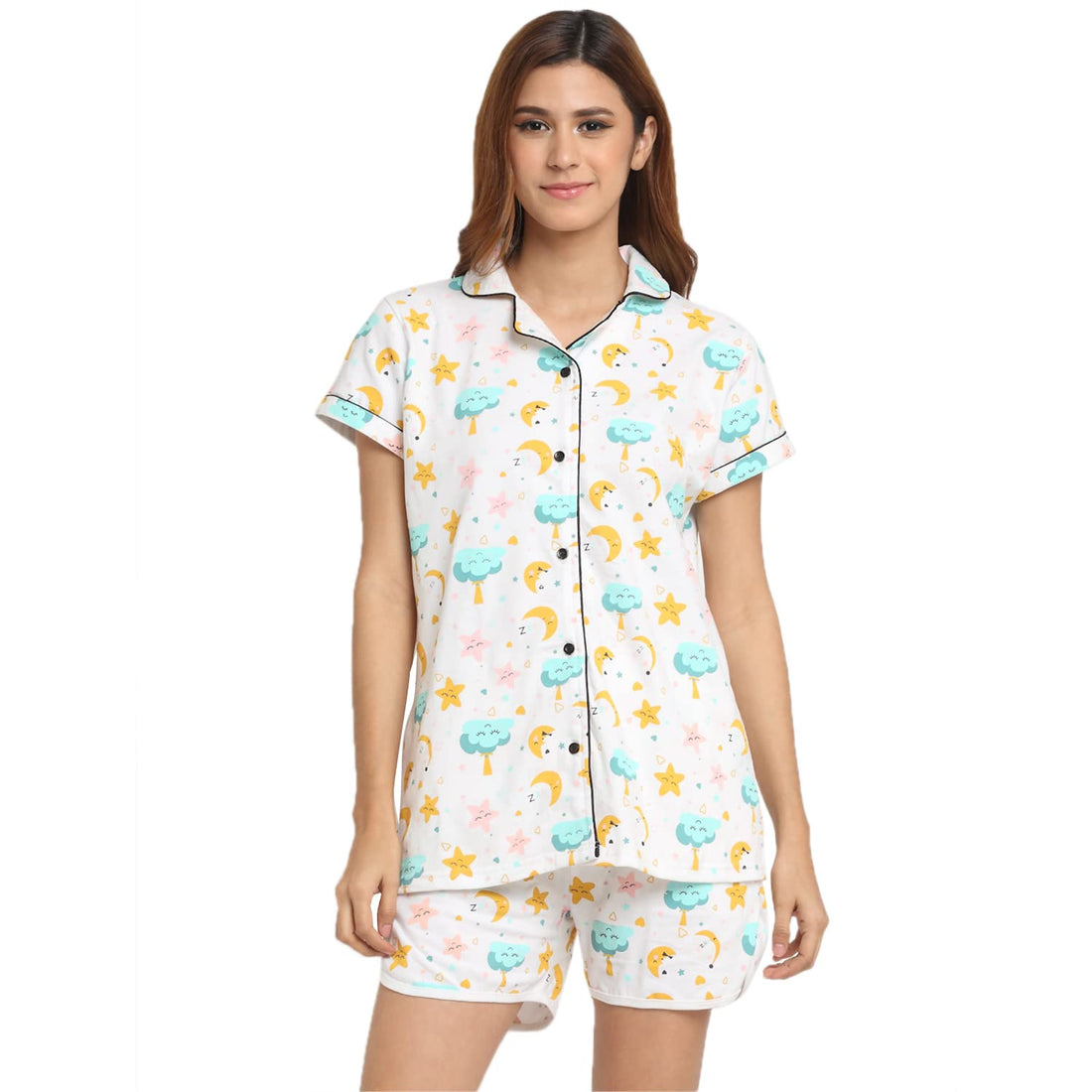 Wonderlady Cotton Nightsuit Set of Shorts & Shirt Starlight with Pockets Medium Size | Creeva