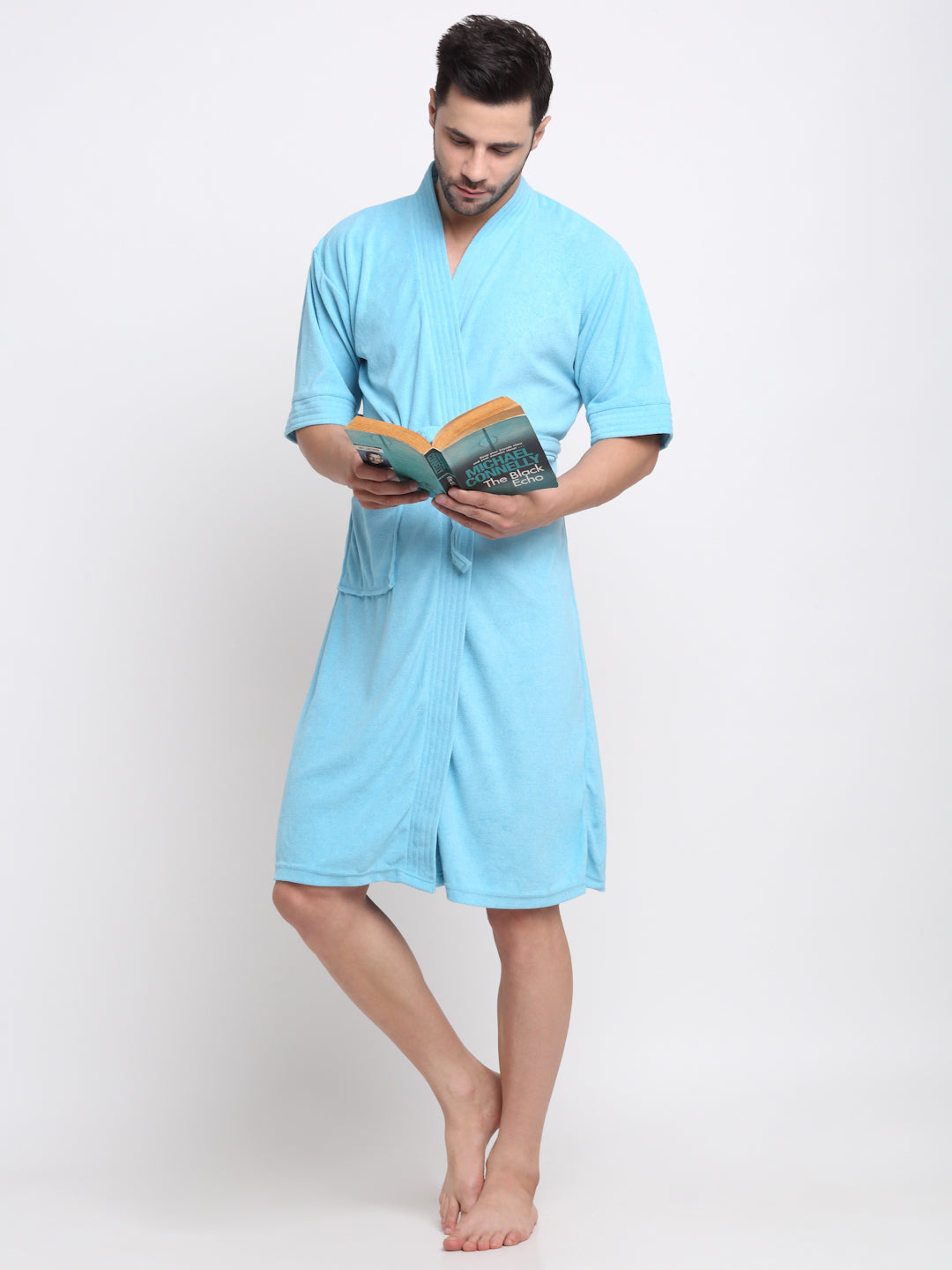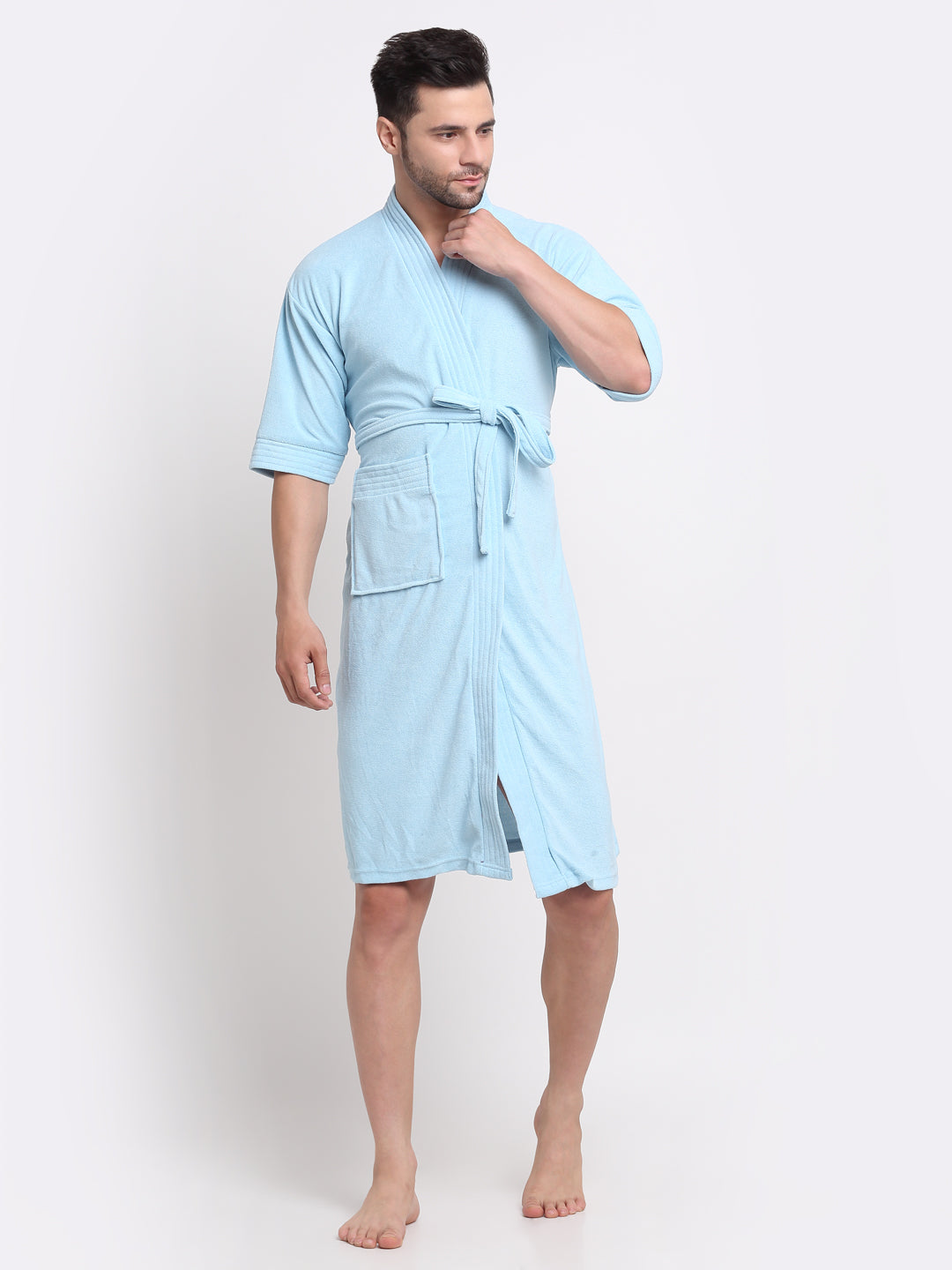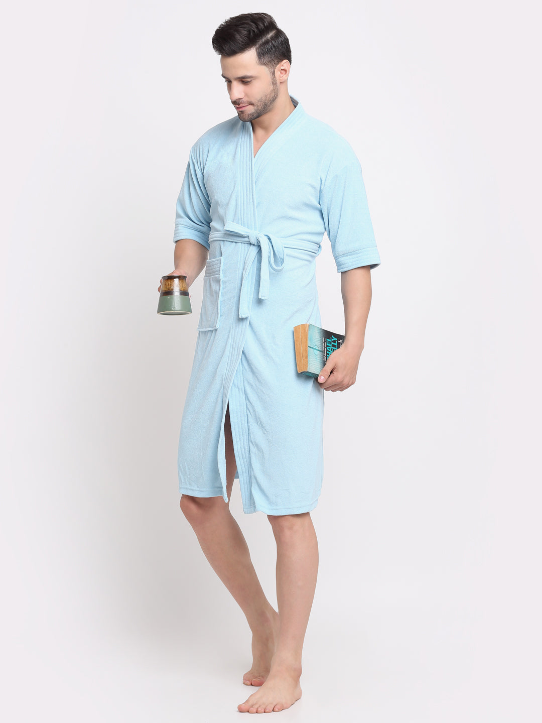 Sky Blue Unisex Terry Bathrobe – Super Soft with Kimono Collar & Pocket