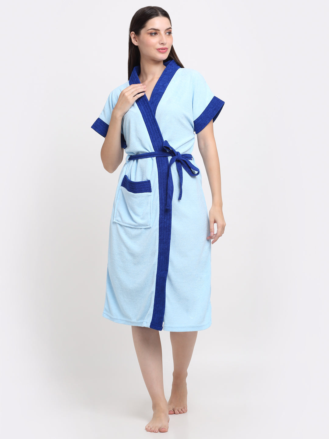 Micro Terry Bathrobe - Turkish Blue & Pink | Half Sleeve, Soft Feel