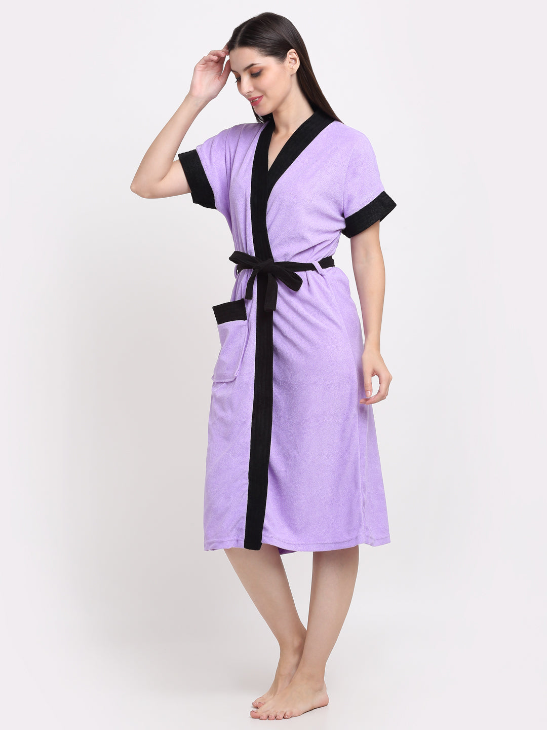 Micro Terry Bathrobe - Lilac & Black | Soft Touch, Kimono Style