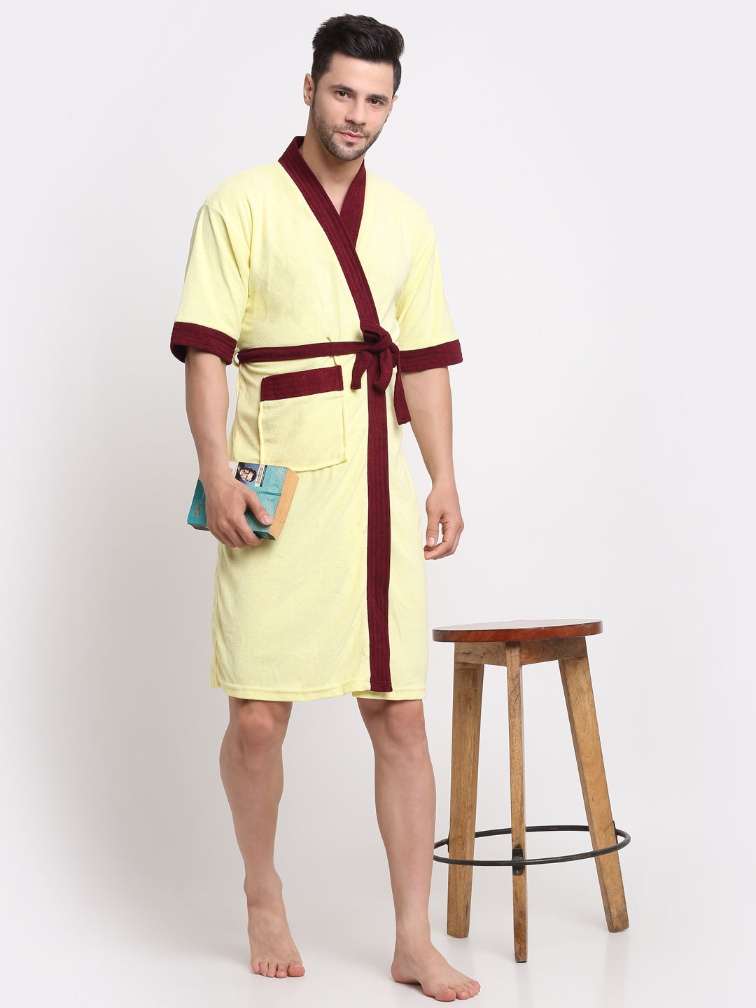 Yellow & Wine Colorblock Bathrobe – Unisex Kimono Robe with Soft Feel