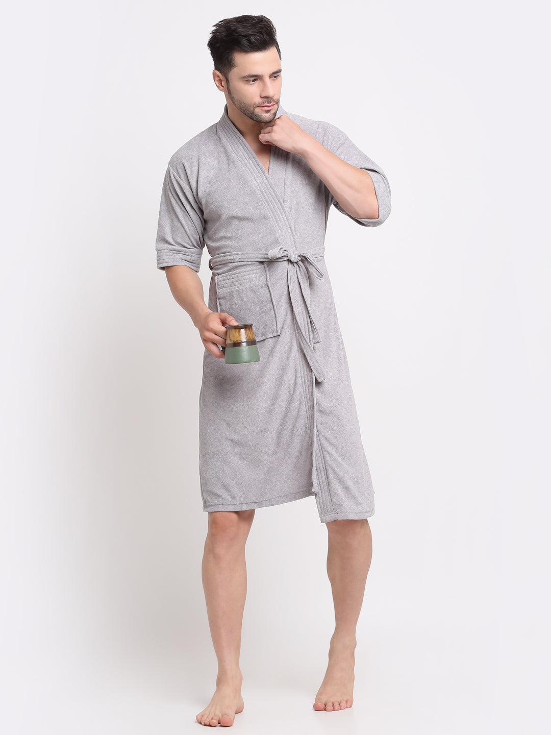 Elegant Grey Unisex Micro Terry Bathrobe – Soft, Light & Stylish