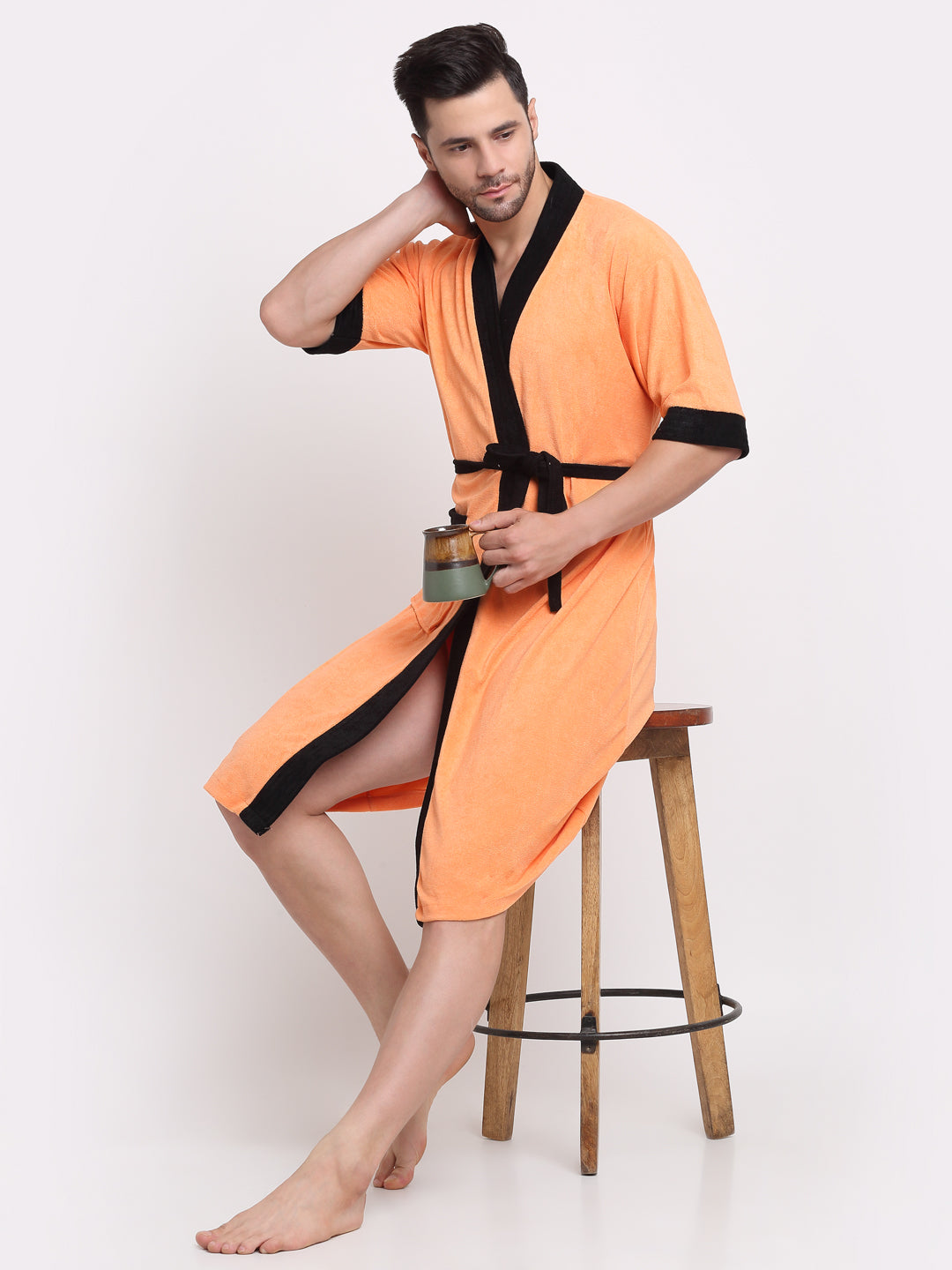 Vibrant Orange & Black Bathrobe – Stylish 3/4 Sleeve Lounging Robe