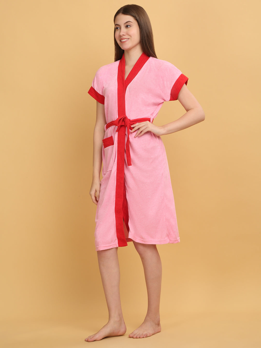 Micro Terry Bathrobe - Pink & Red | Vibrant Look, Soft Terry