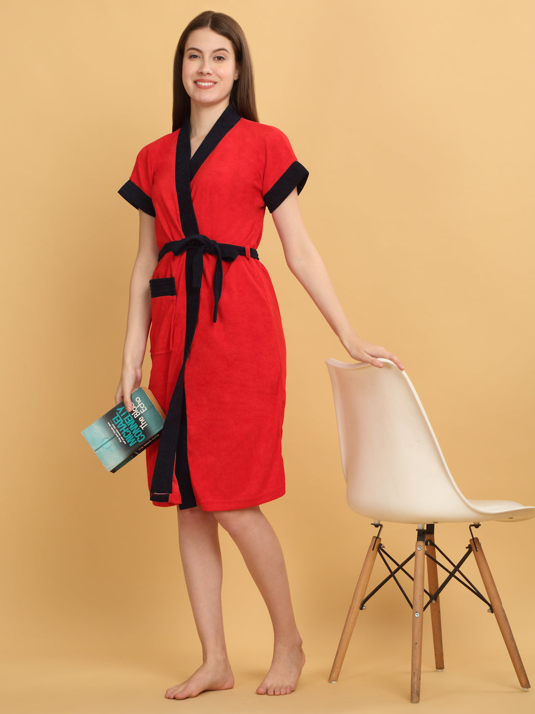 Micro Terry Bathrobe - Red & Navy | Daily Wear, Kimono Style