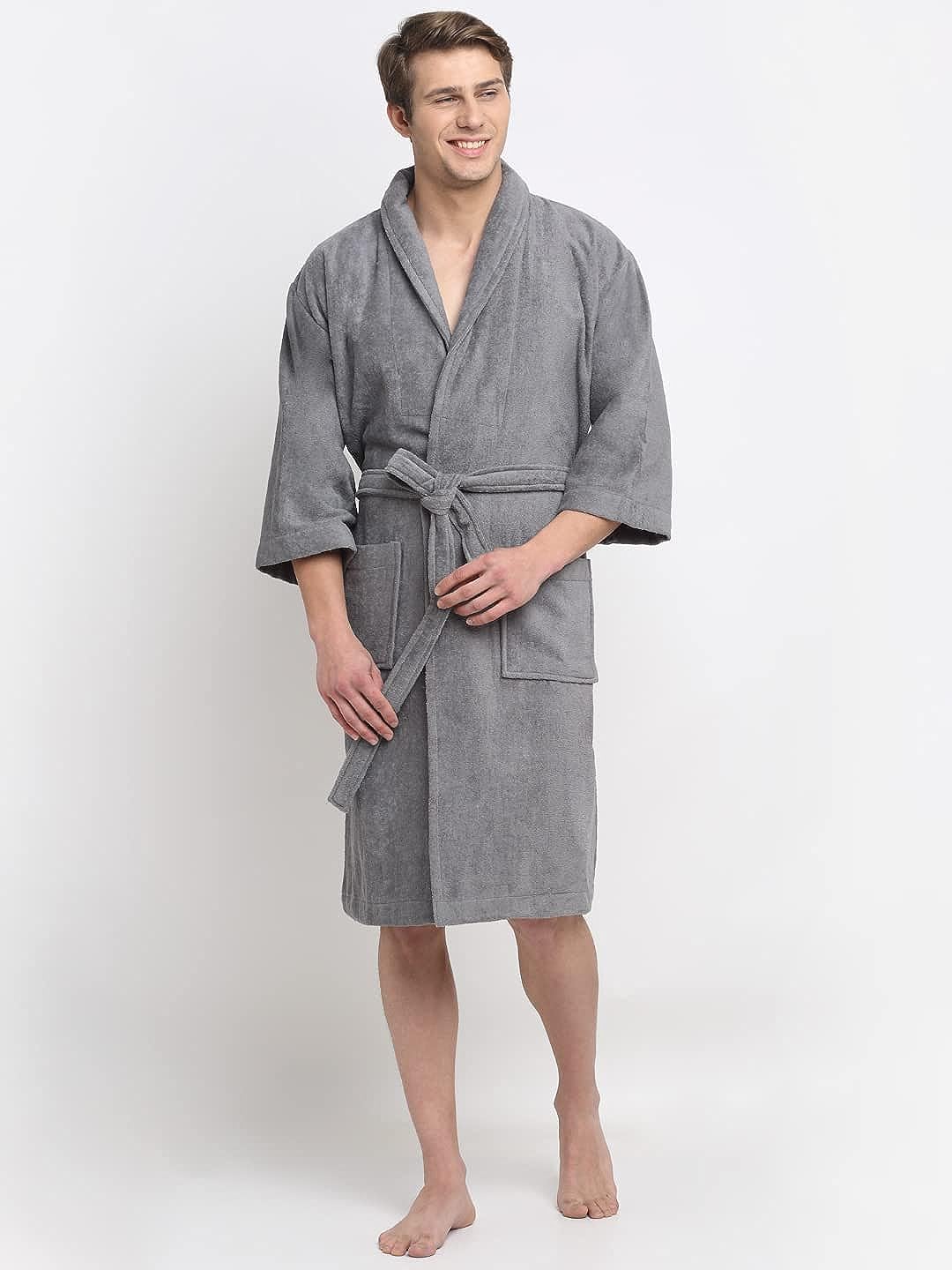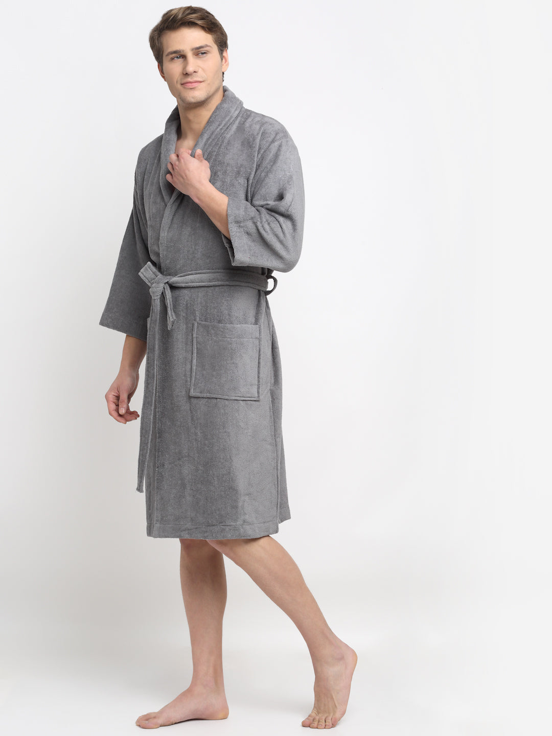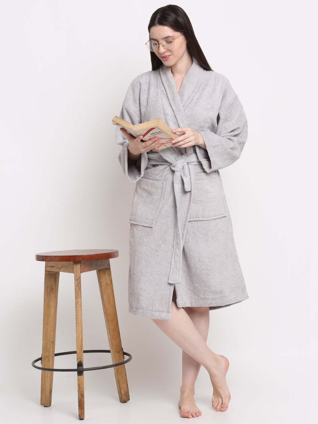 Luxury Grey 100% Cotton Unisex Bathrobe