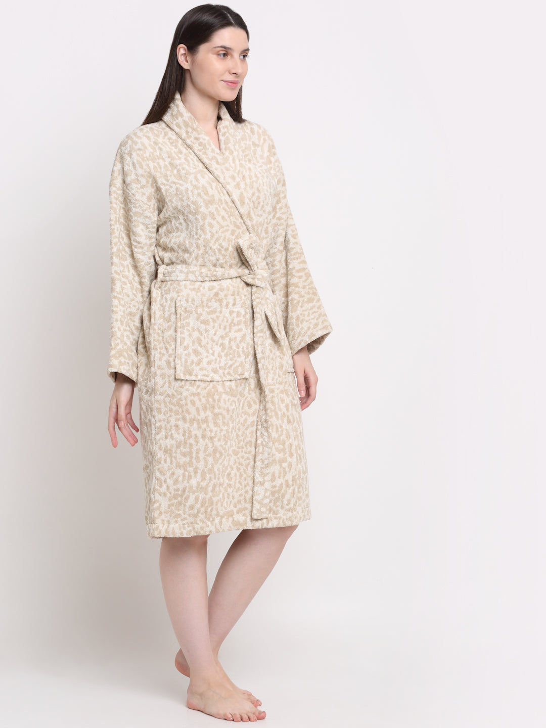 Luxury Cream & Rust Leopard 100% Cotton Unisex Bathrobe