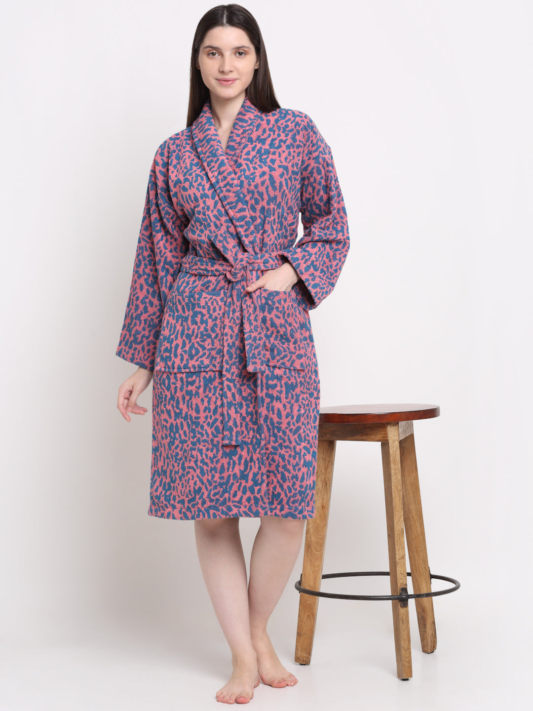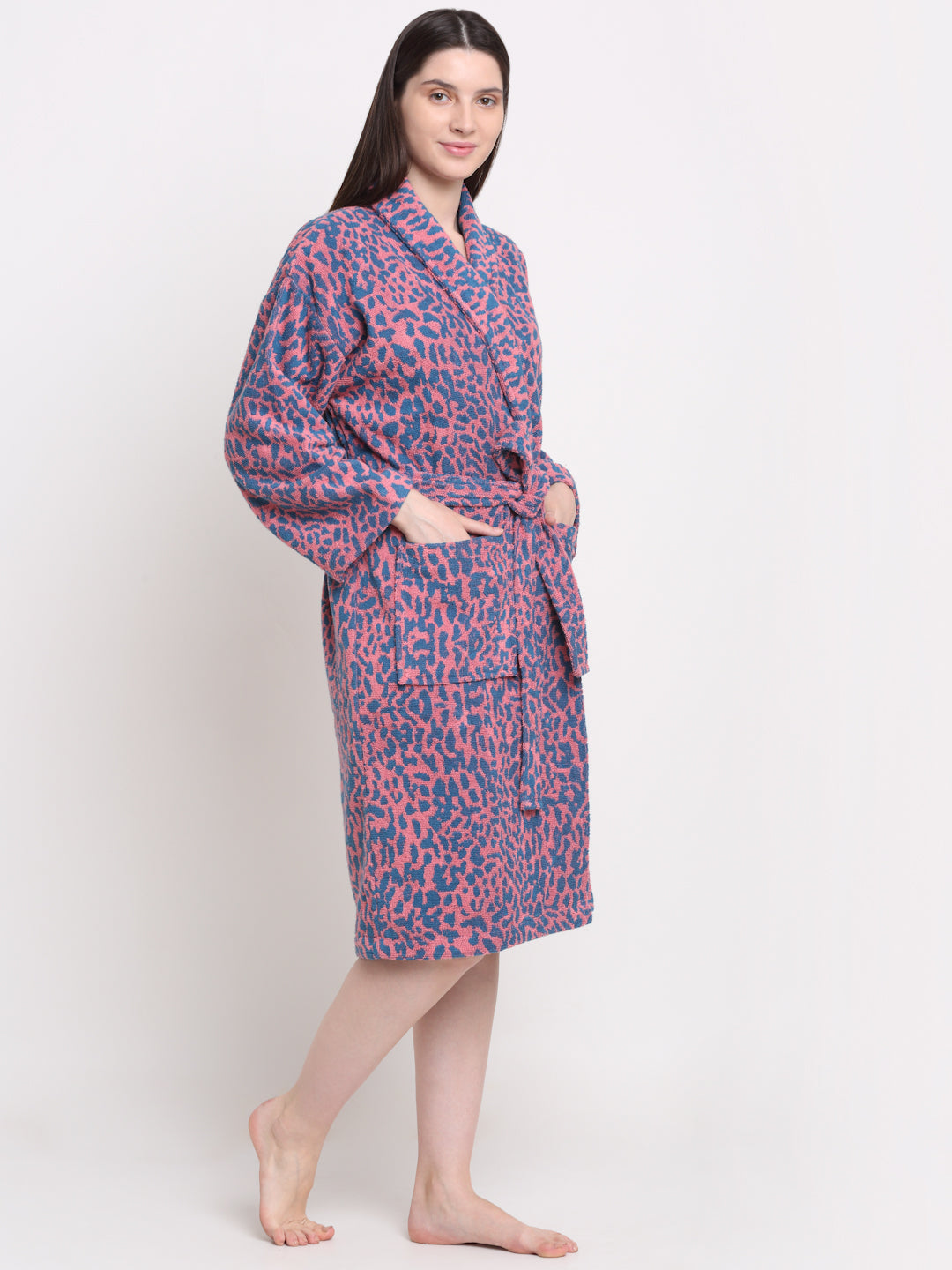 100% Cotton Pink Leopard Highly Absorbent Women Luxury Bathrobe