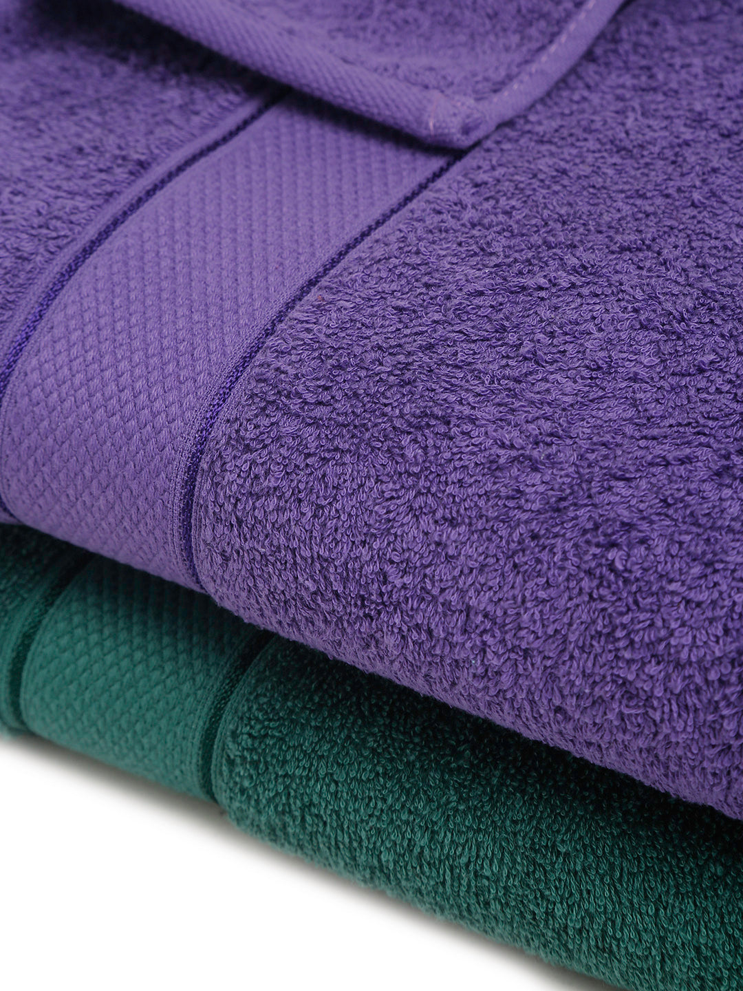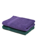 Dark Green & Violet 2 Pc Solid 525 GSM Bath Towel Set