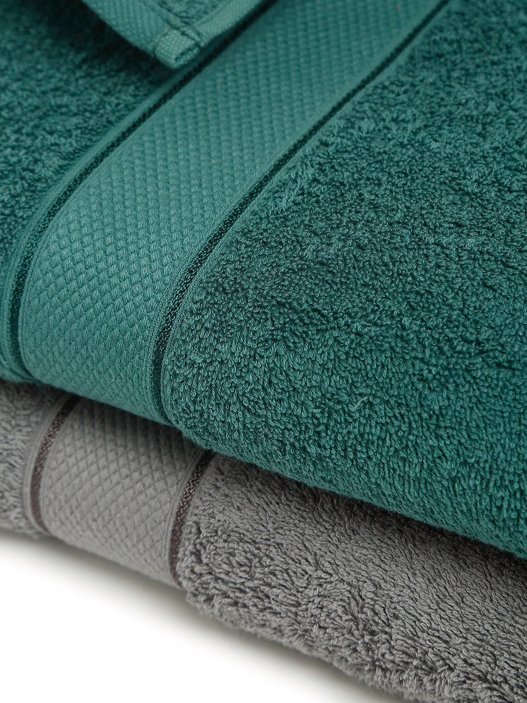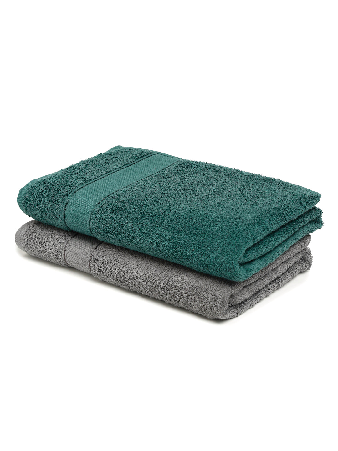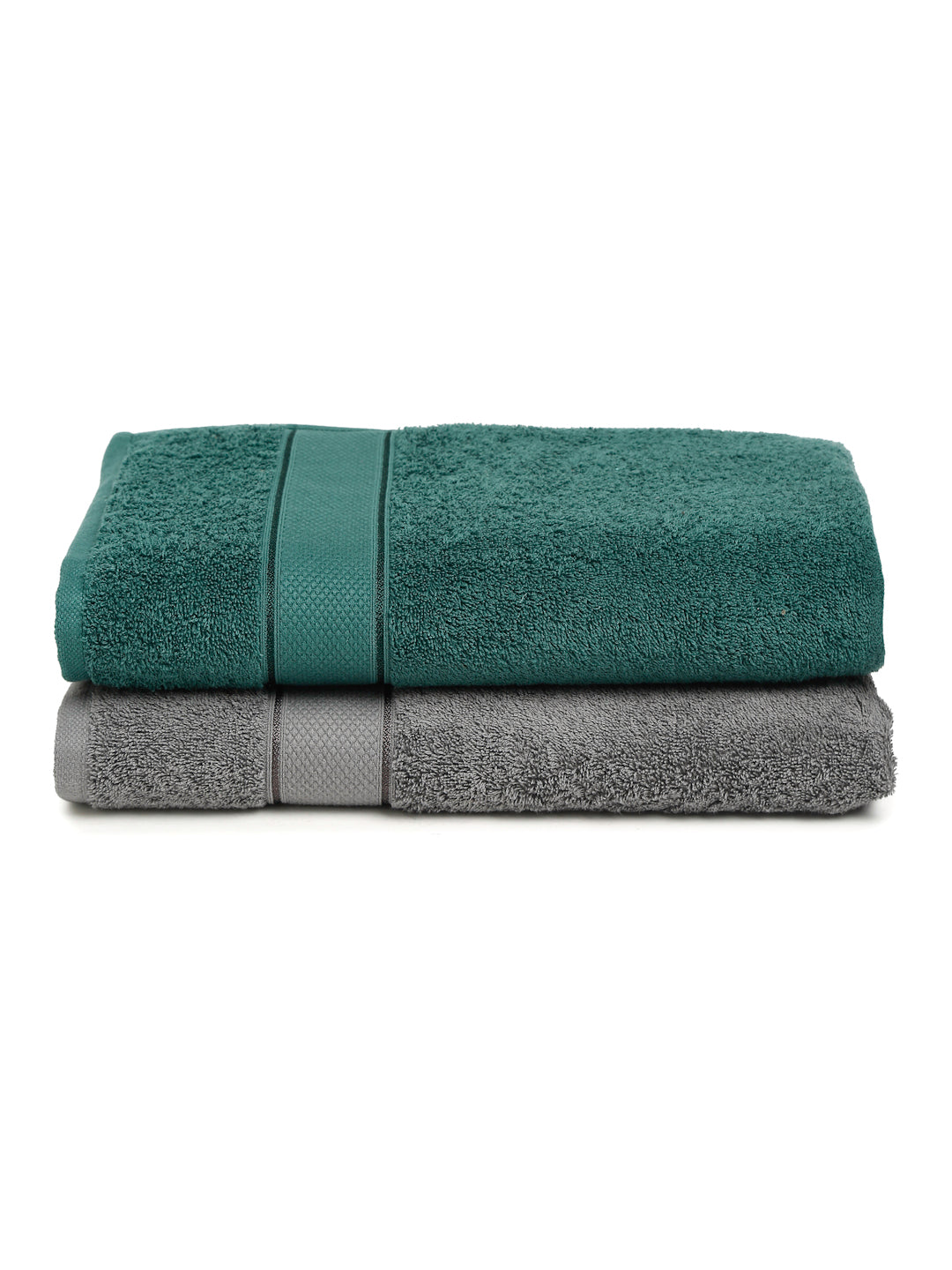 Grey & Dark Green 2 Pc Solid 525 GSM Bath Towel Set
