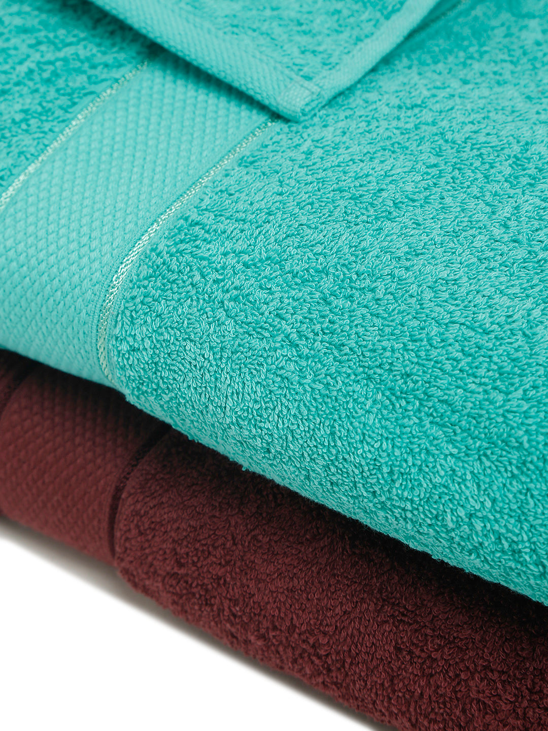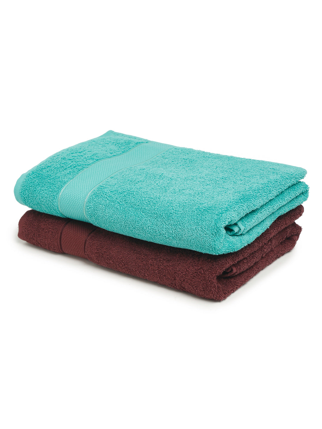 Wine & Sea Green 2 Pc Solid 525 GSM Bath Towel Set