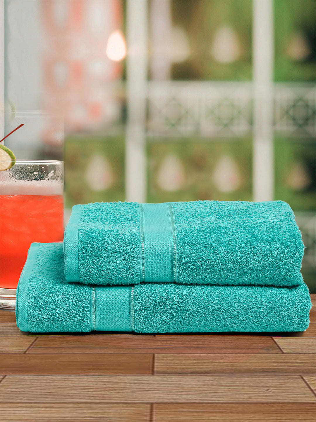 100% Cotton 2 Piece Hand & Bath Towel Set, 525 GSM (Sea Green)