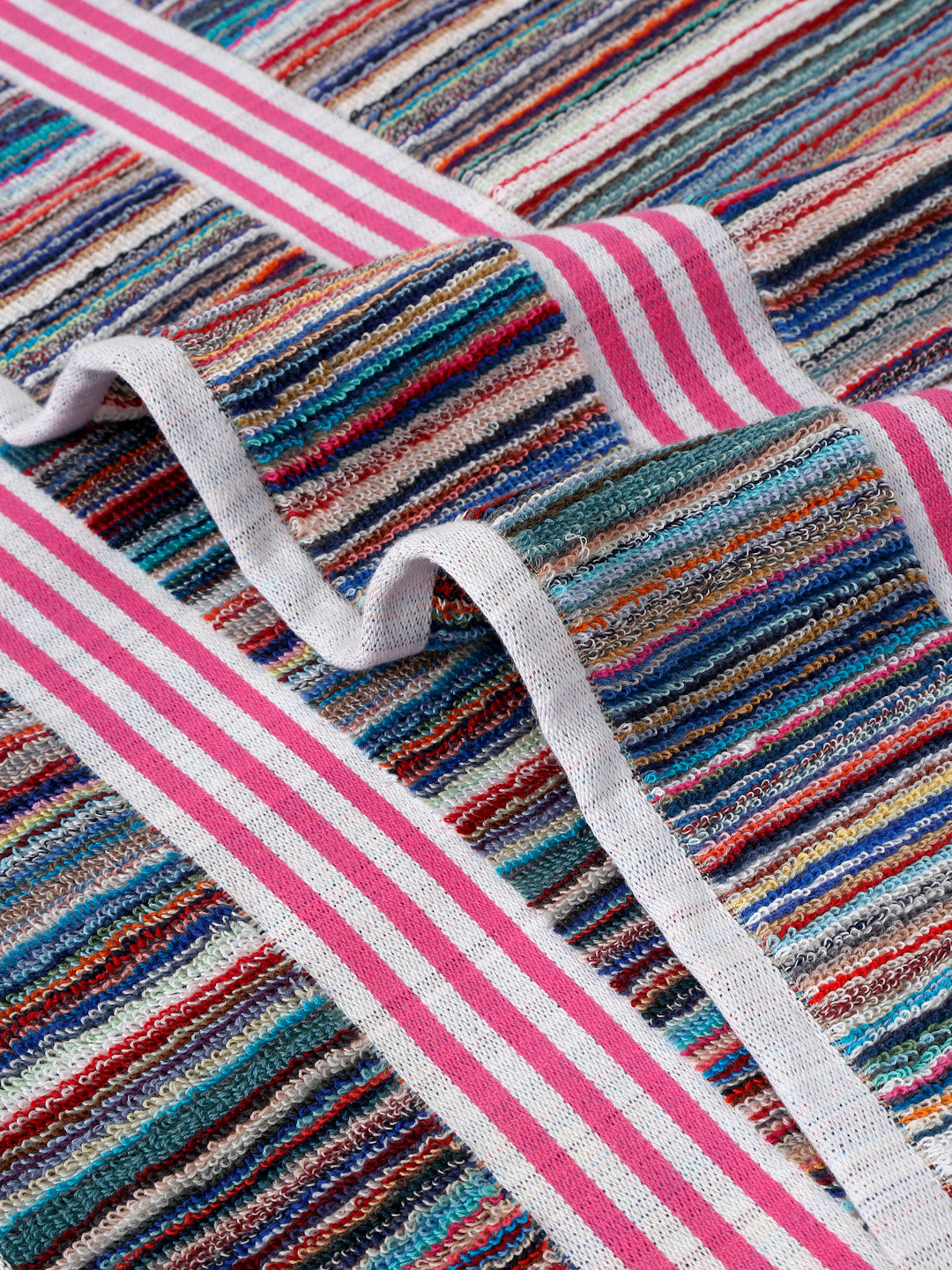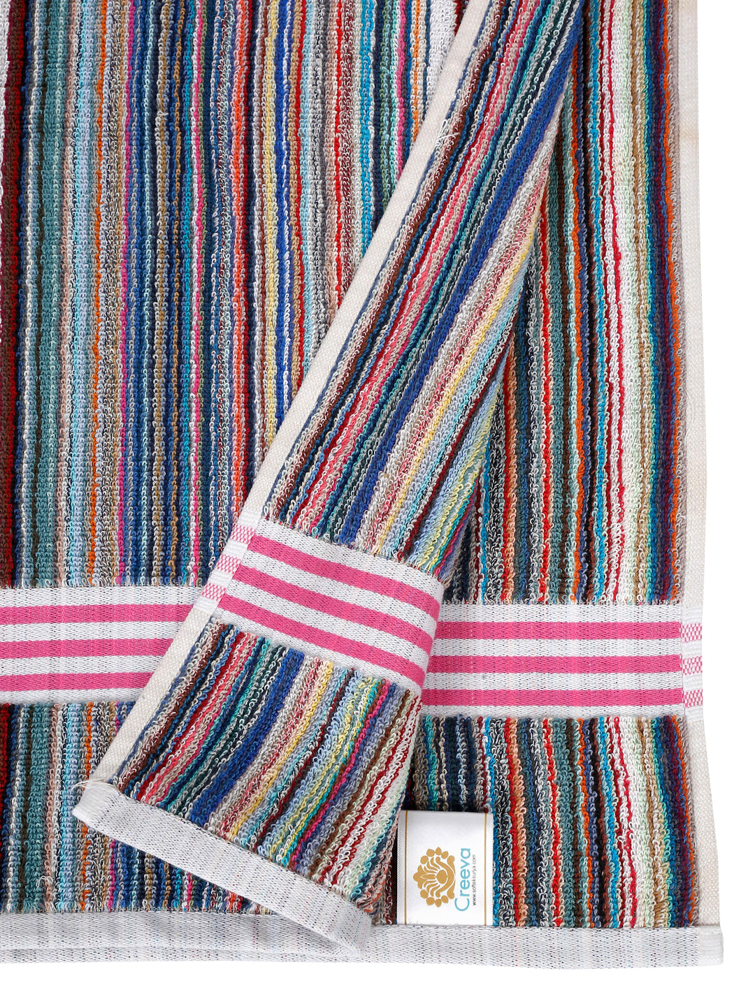 Wrap yourself in luxury with this premium multi-color striped cotton bath towel. Crafted from high-quality 100% cotton, this towel offers superior softness, excellent absorbency, and quick-drying properties. The vibrant striped design adds a touch of elegance to your bathroom, making it a perfect blend of style and functionality. Whether you're using it after a refreshing shower, at the gym, or on vacation, this towel provides unmatched comfort. Designed with durability in mind, the towel maintains its plush texture and color vibrancy even after multiple washes. The lightweight fabric ensures easy portability, making it ideal for everyday use. Upgrade your bathing experience with this stylish and practical addition to your linen collection.