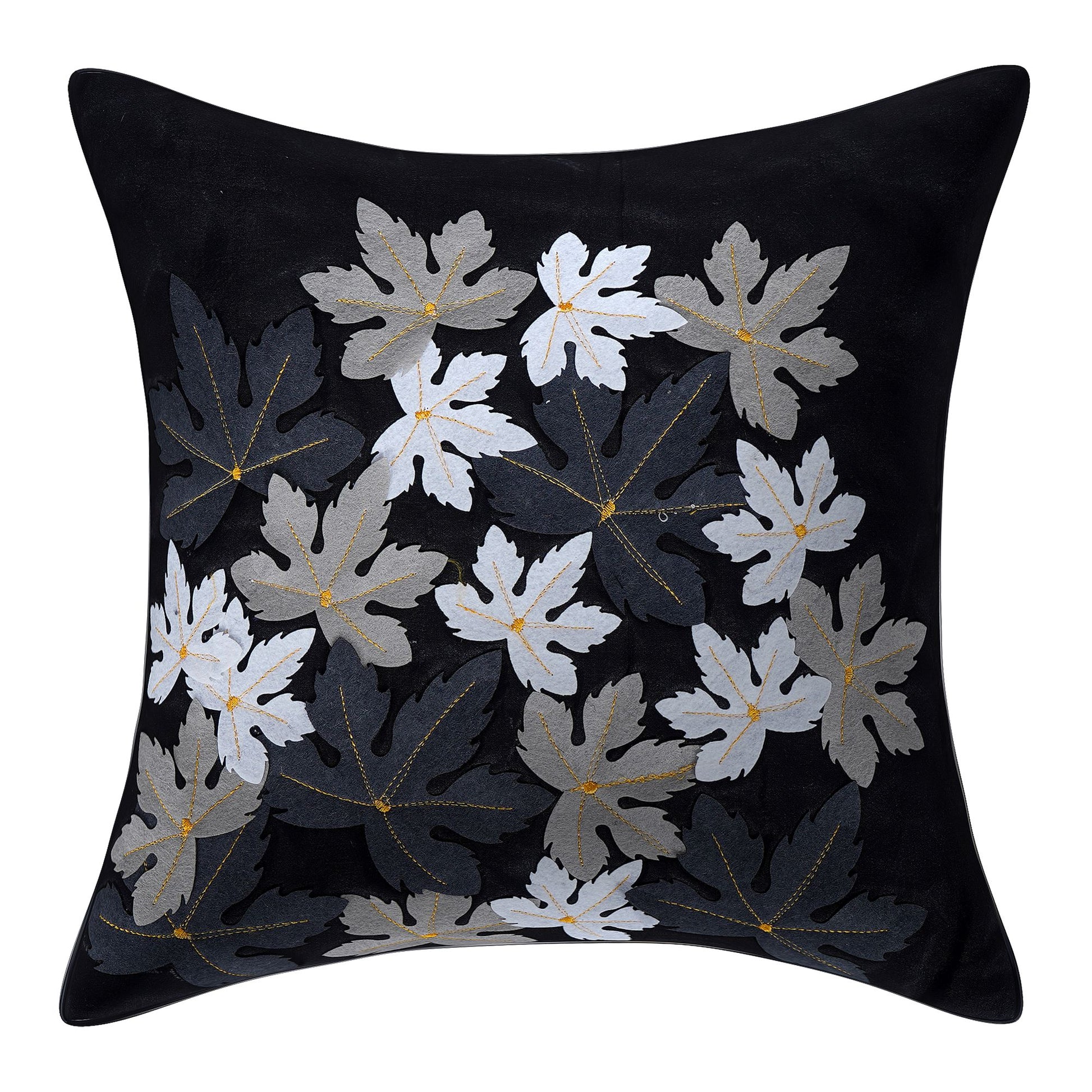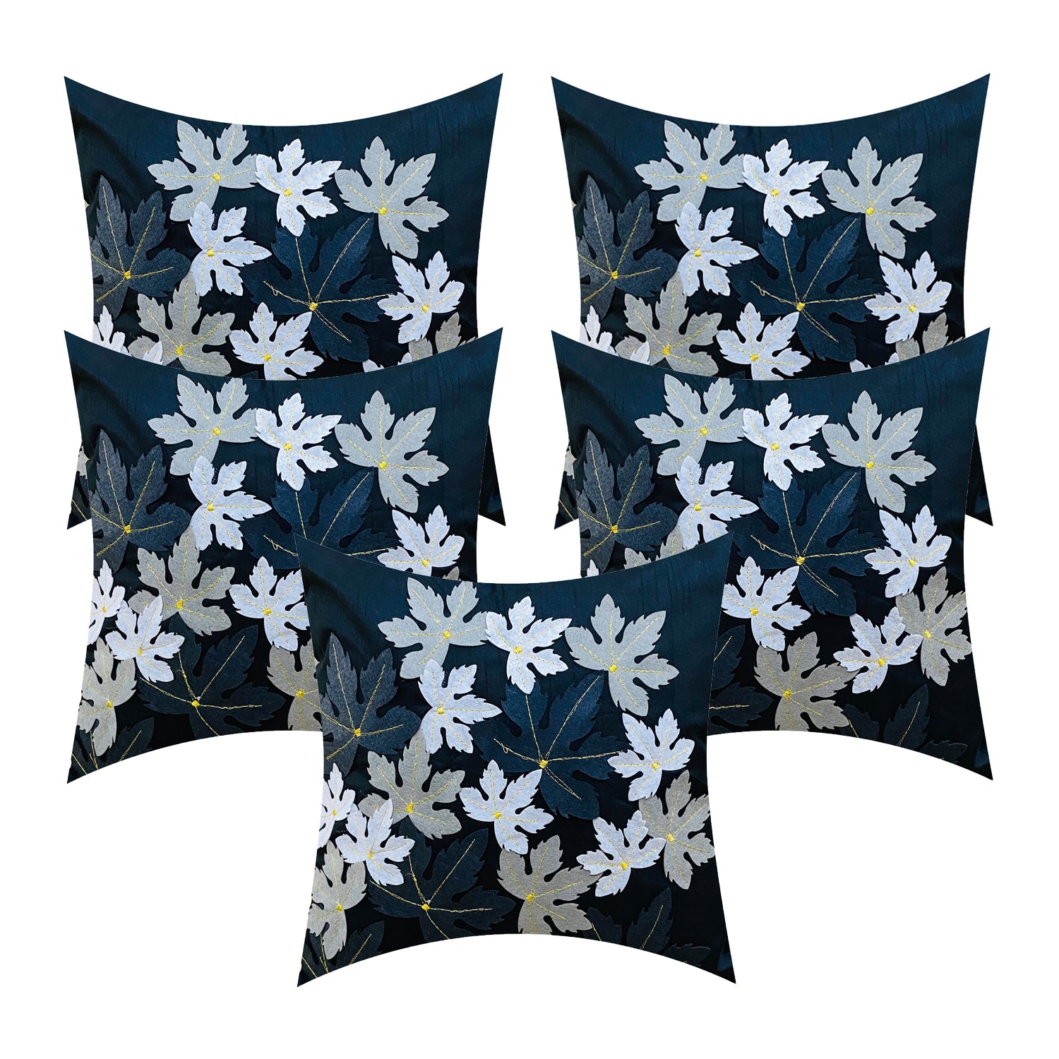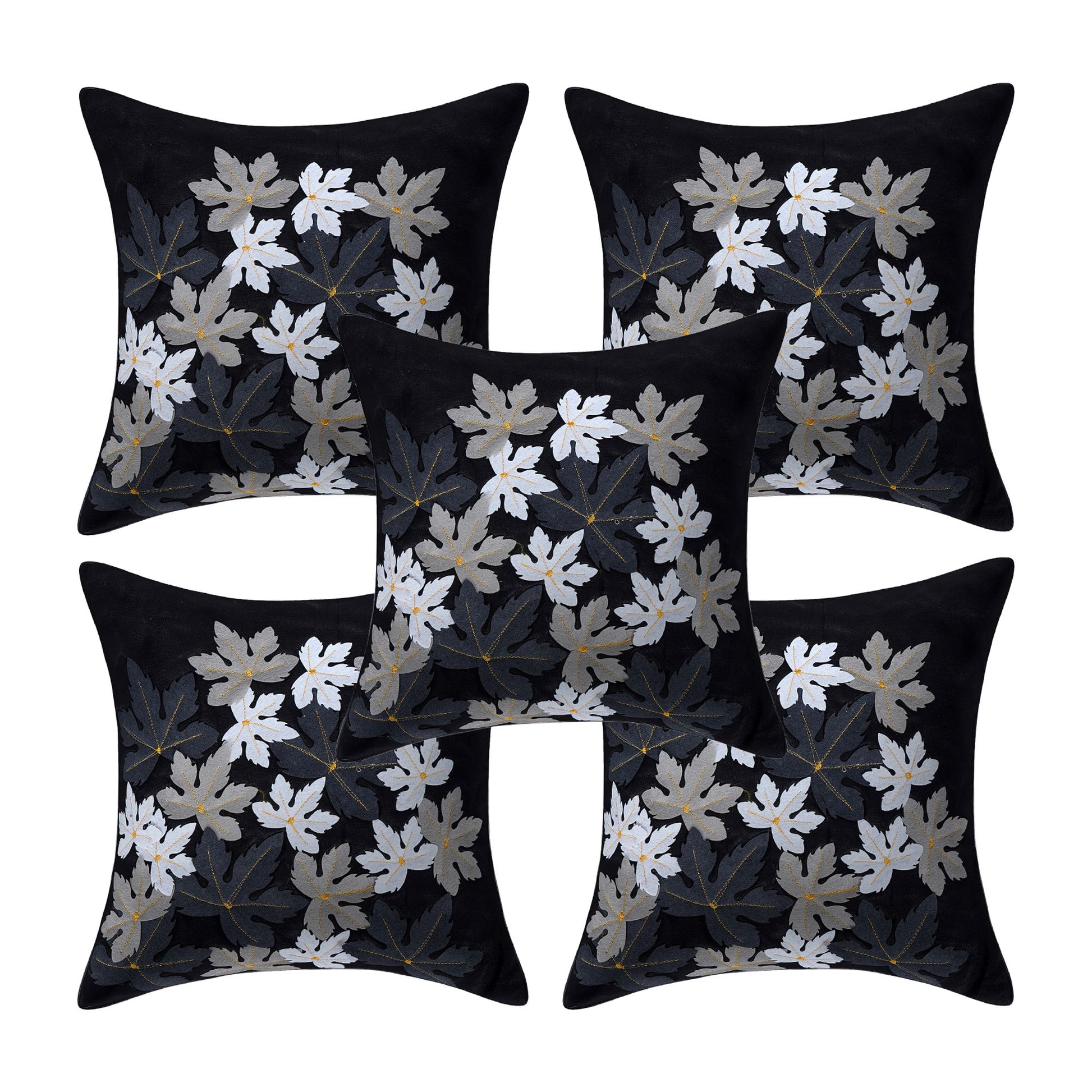 Set of 5 Silk Flower Cushion Covers | Black | 16 x 16 INCH or 40 x 40 CM