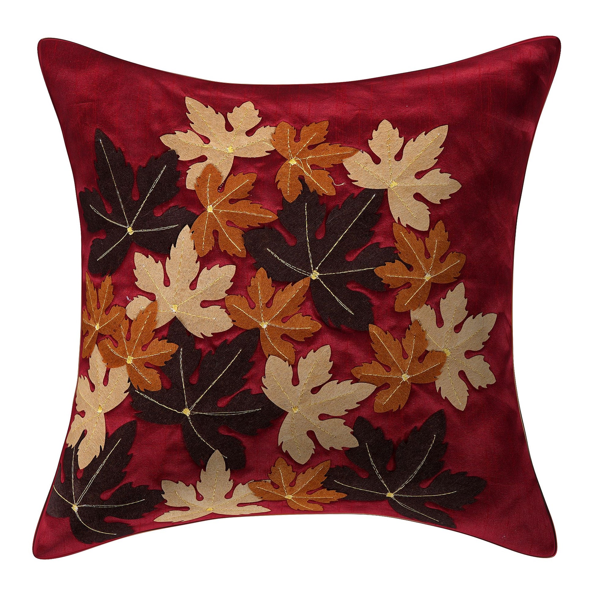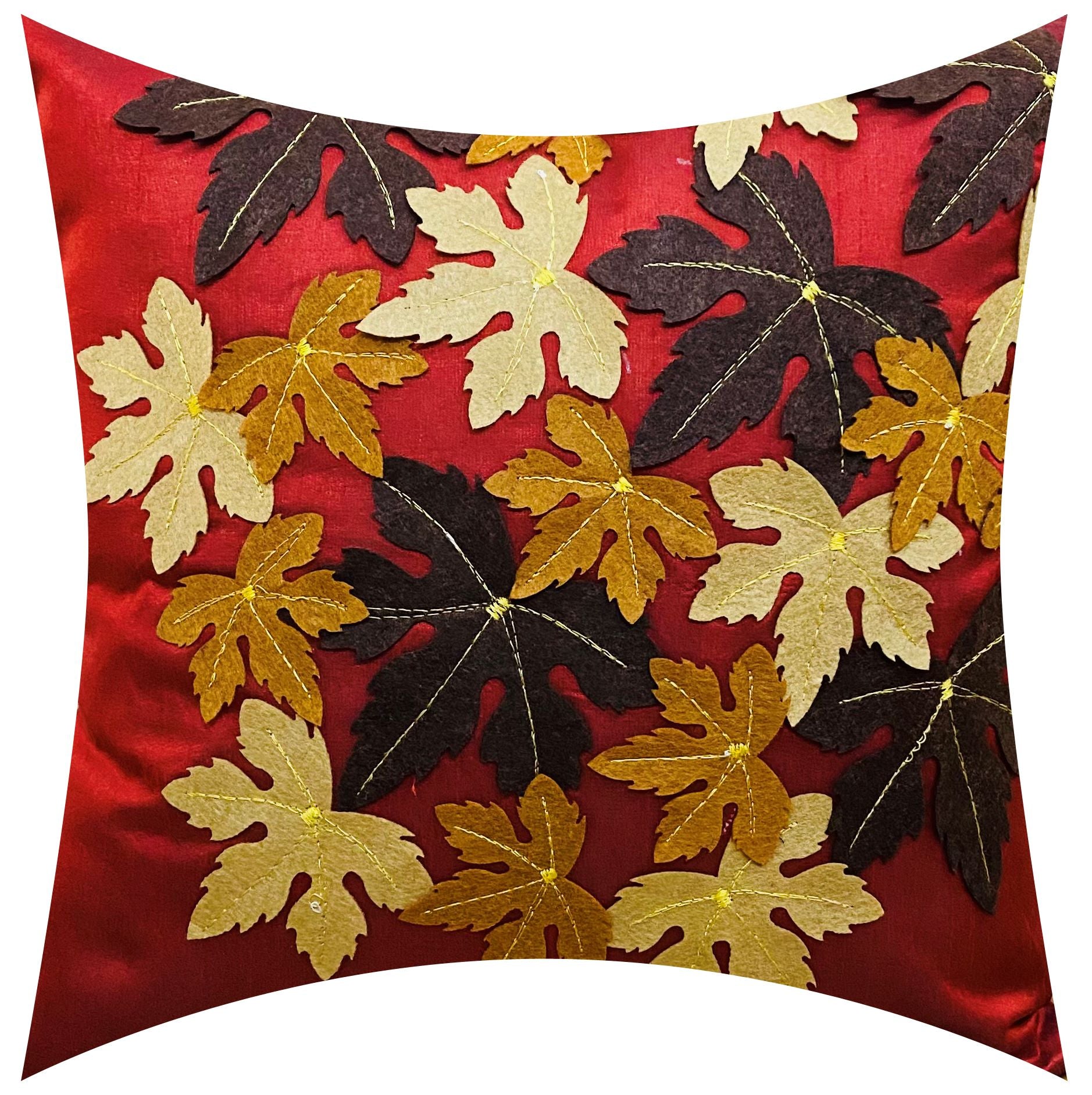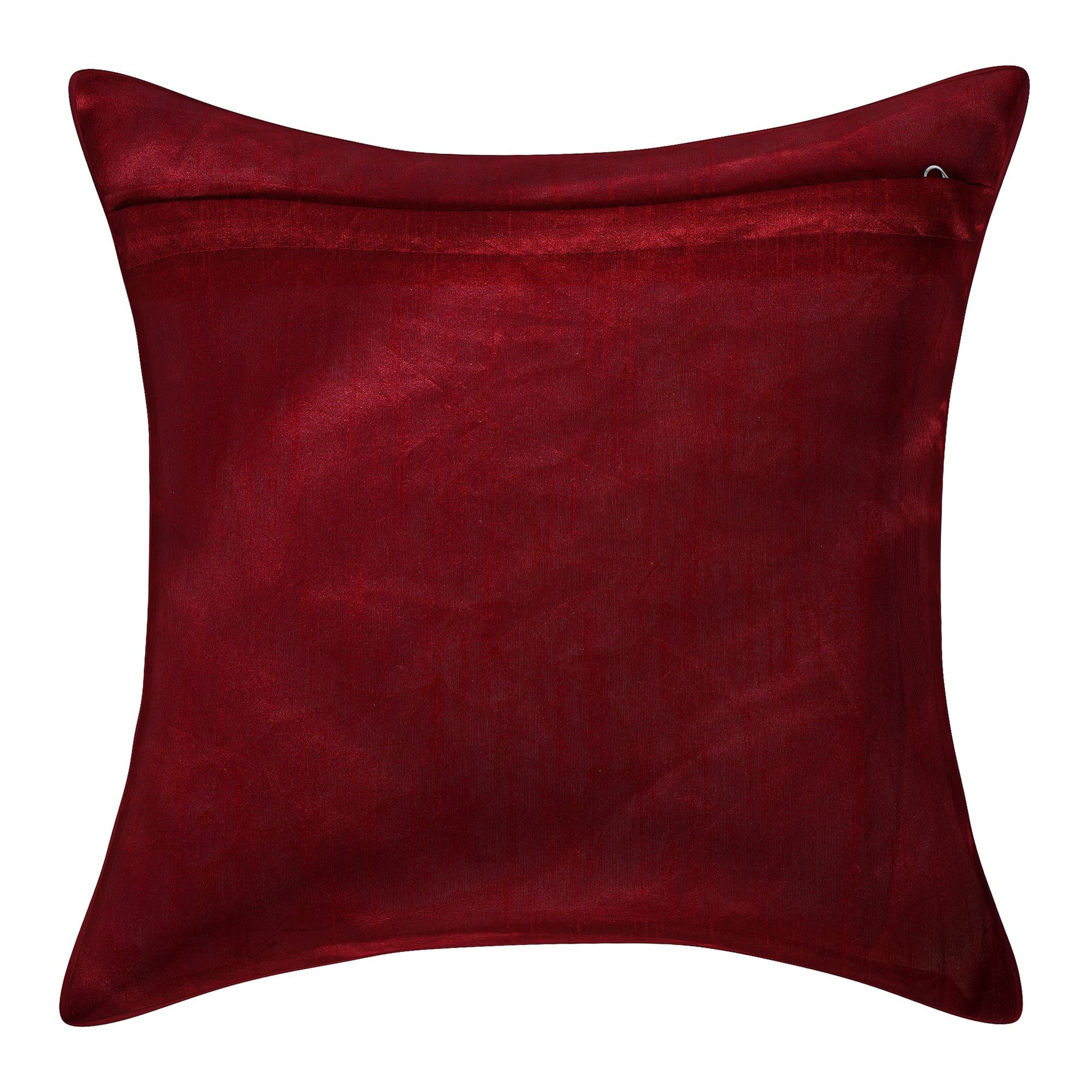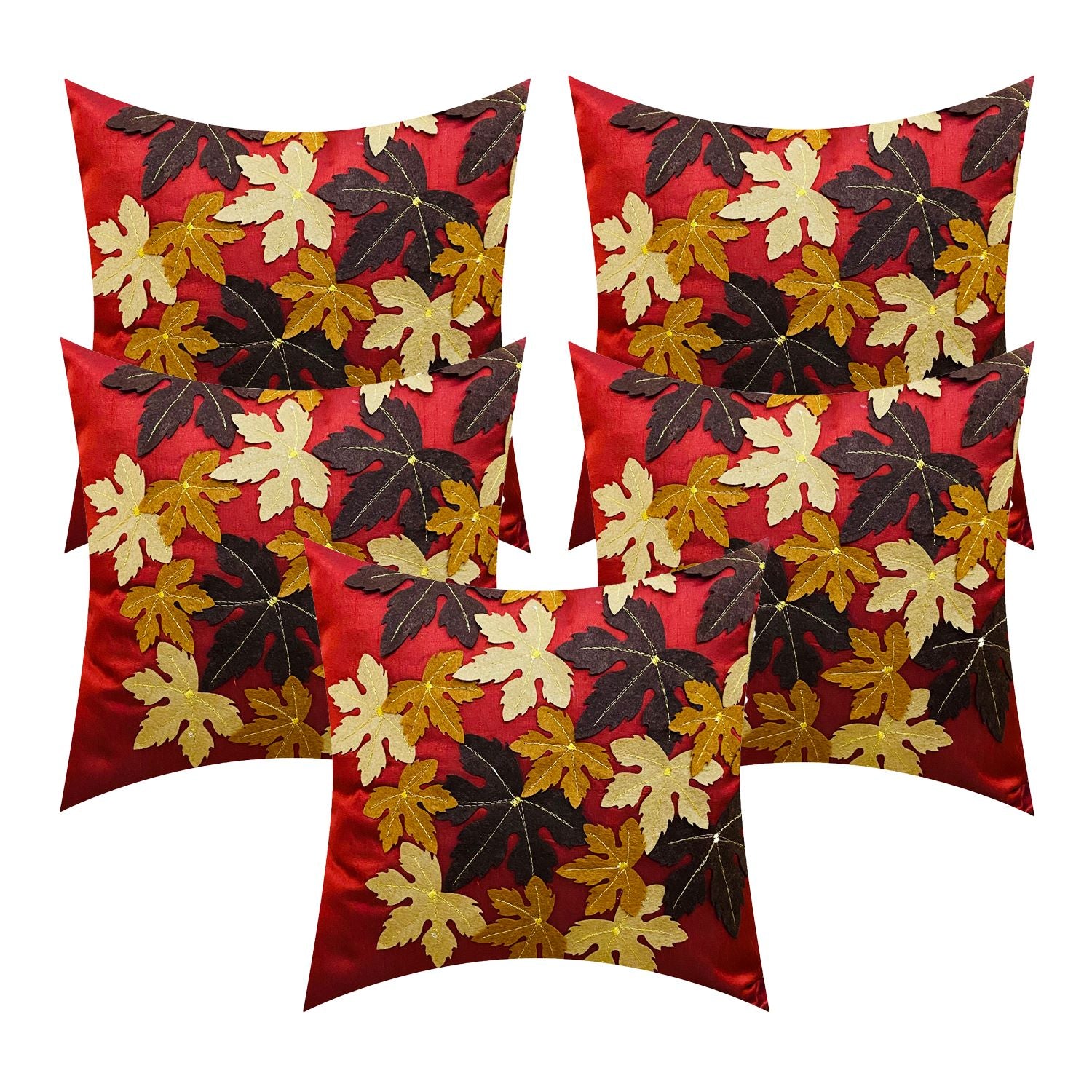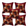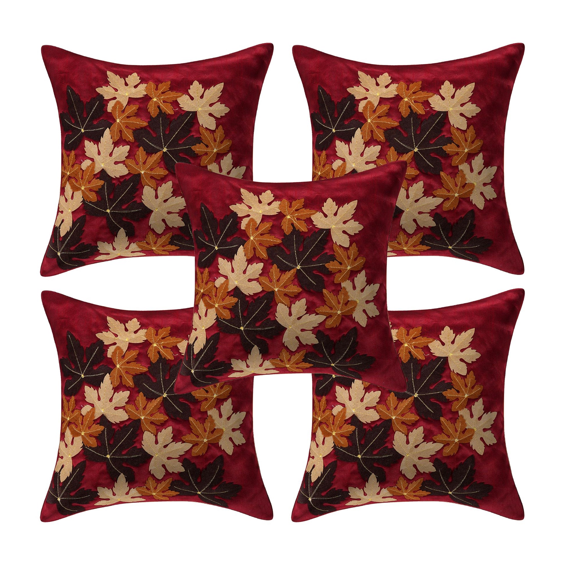 Set of 5 Silk Flower Cushion Covers | Maroon | 16 x 16 INCH or 40 x 40 CM
