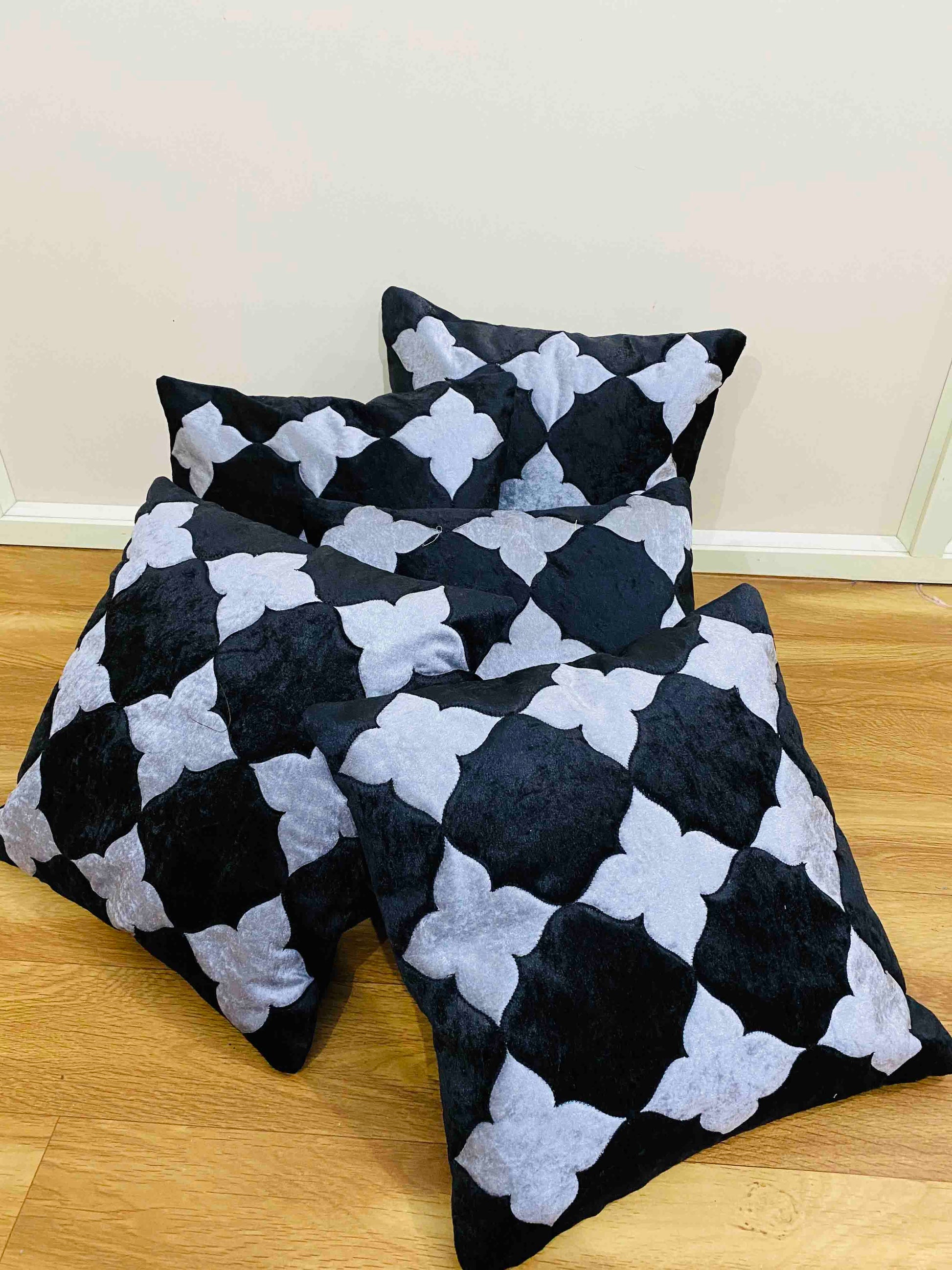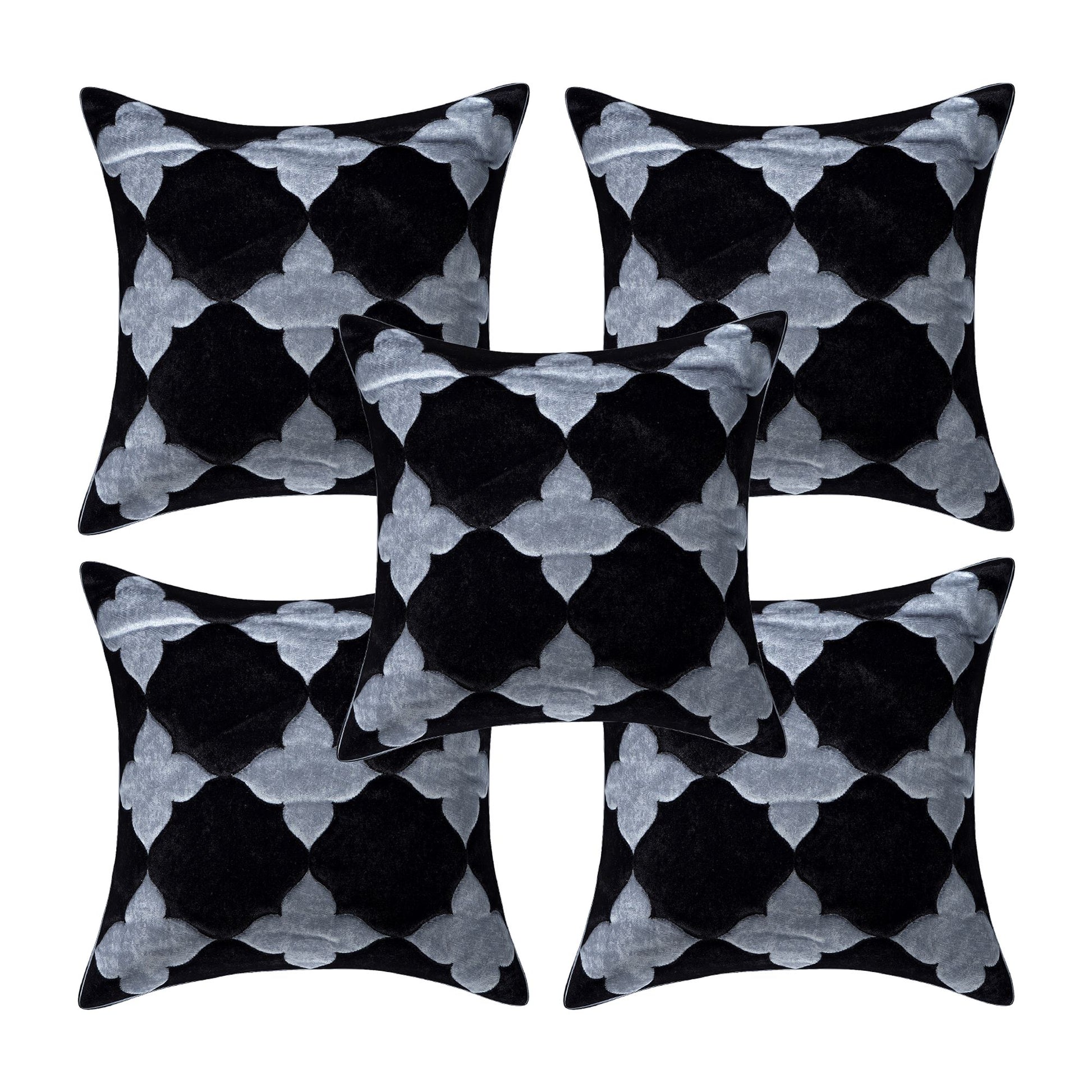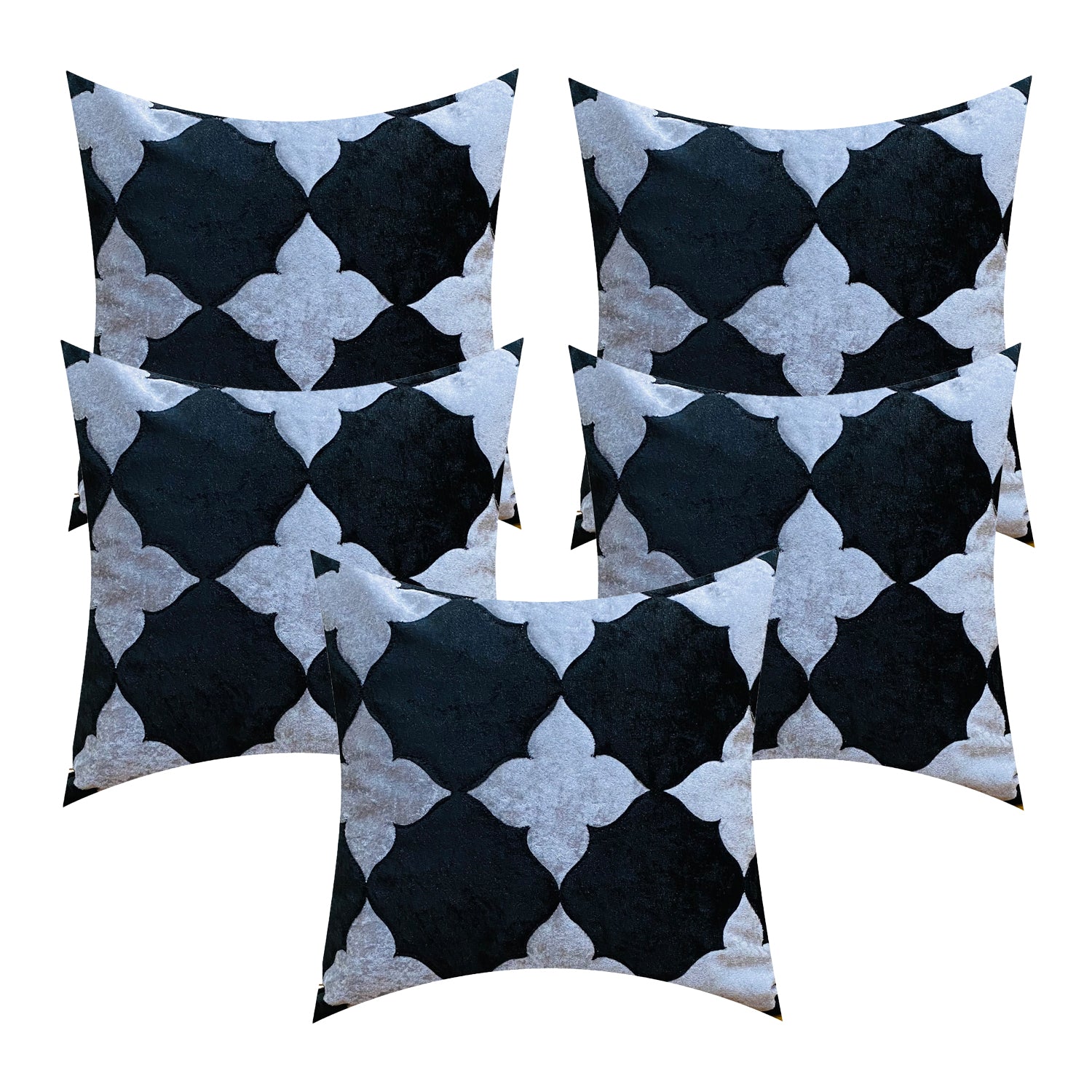 Set of 5 Velvet Cushion Covers | Star Design Black | 16 x 16 INCH or 40 x 40 CM