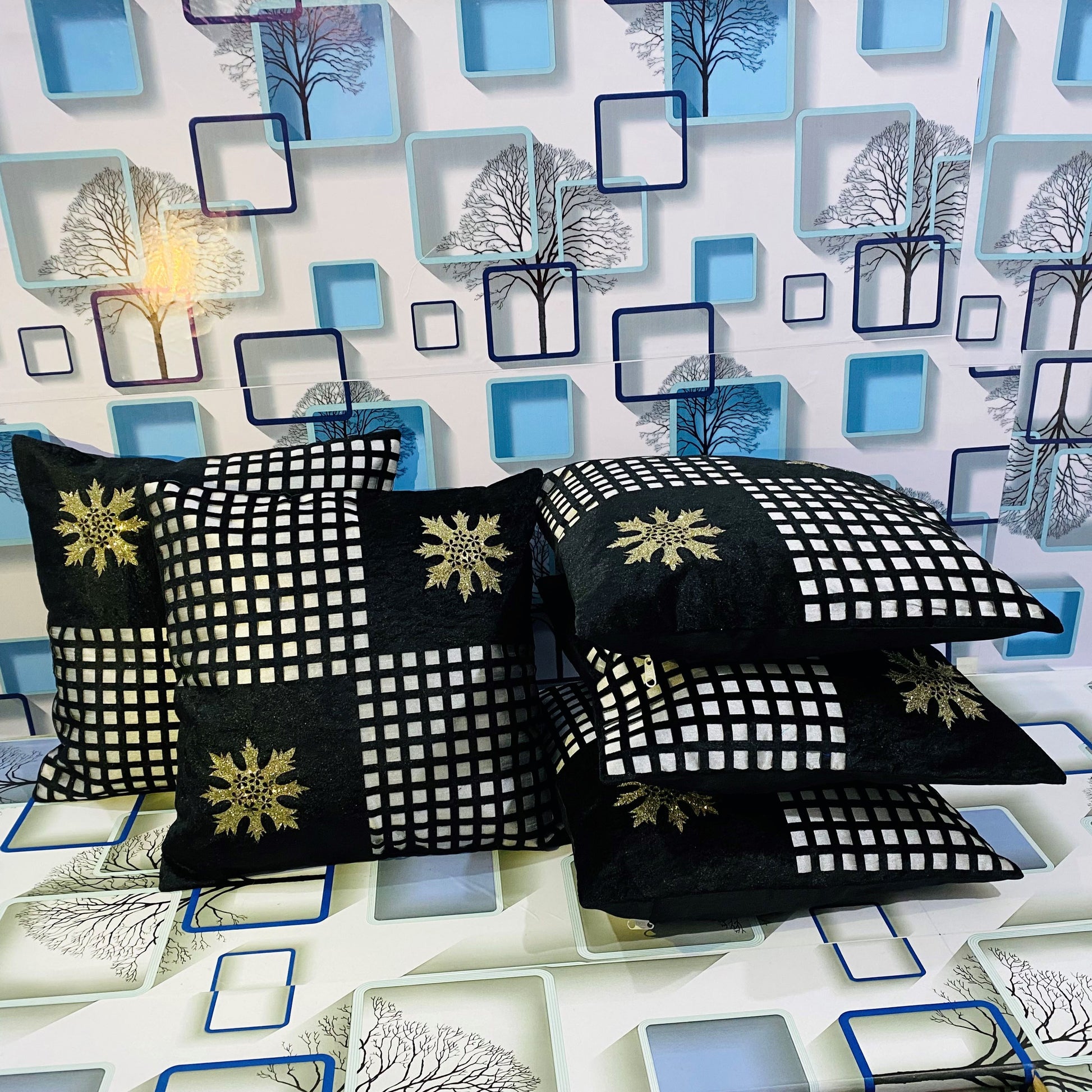Set of 5 Velvet Cushion Covers | Zarin Patta Black | 16 x 16 INCH or 40 x 40 CM