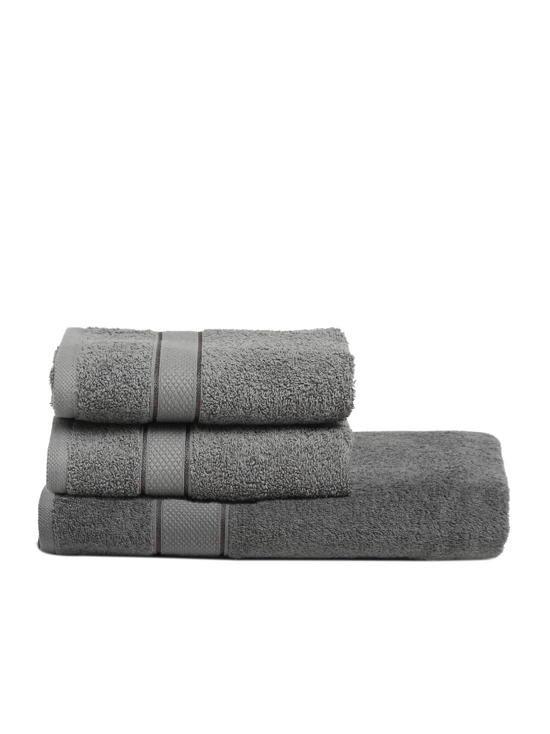 100% Cotton 3 Piece Hand & Bath Towel Set, 525 GSM (Grey)