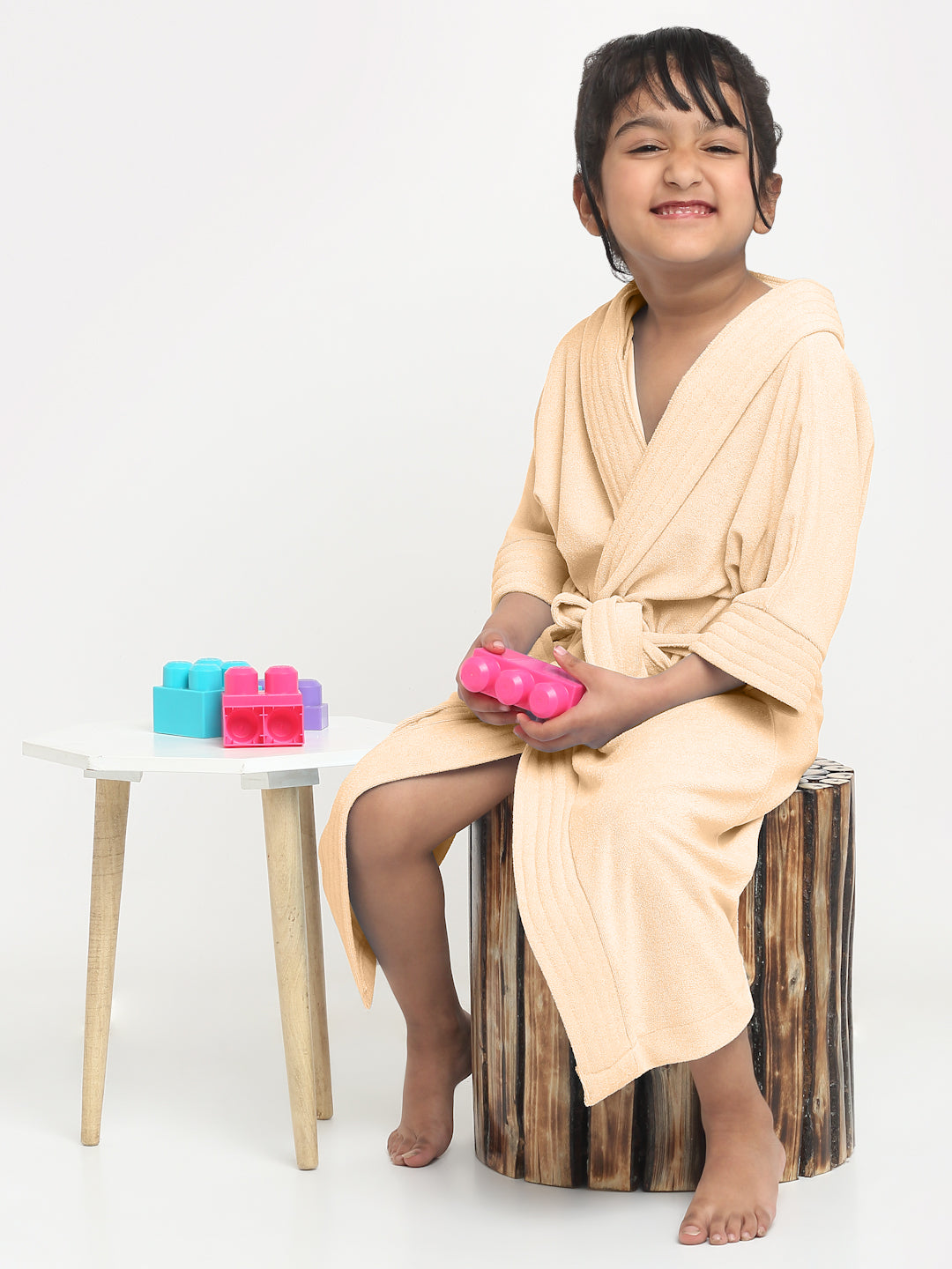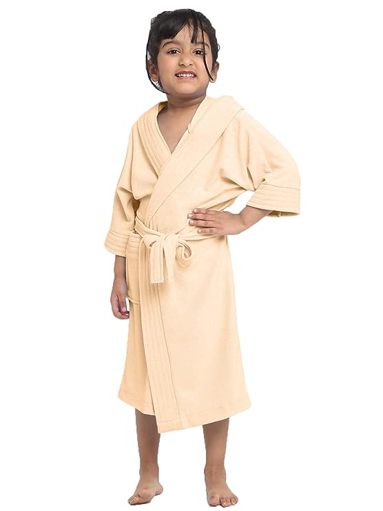 Melodious Kids Hooded Bathrobe Unisex with Front Pocket & Adjustable Belt (Peach)