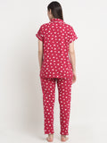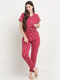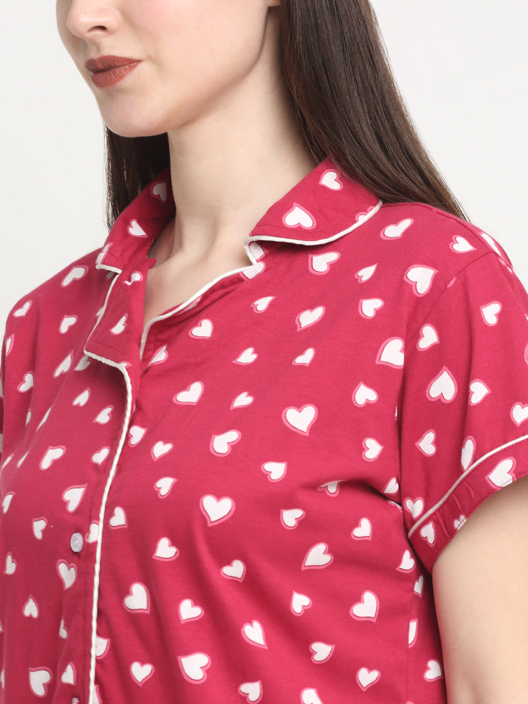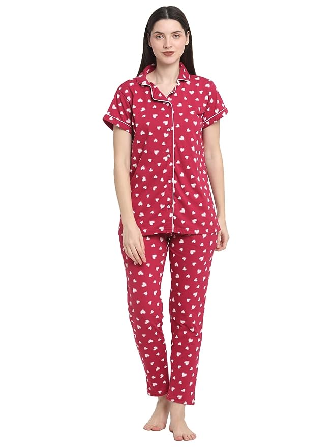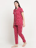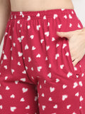 Wonderlady Cotton Nightsuit Set of Shirt & Pyjama Cherry Love Heart with Pockets | Creeva