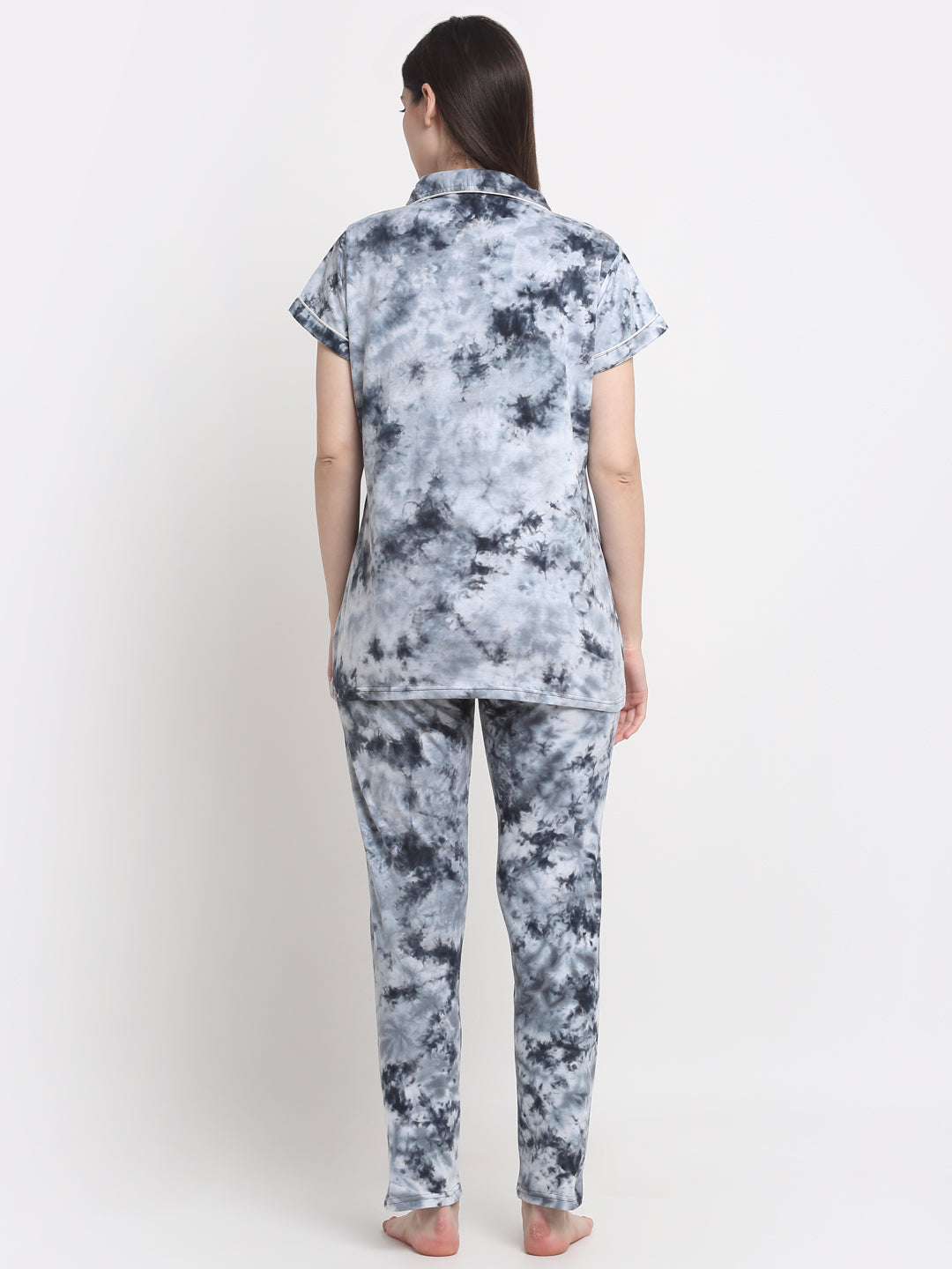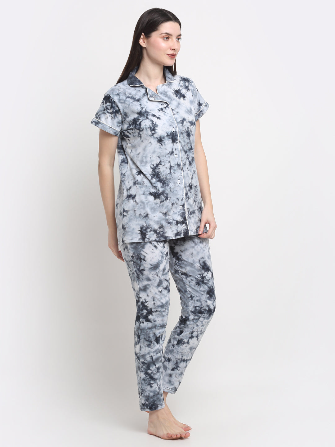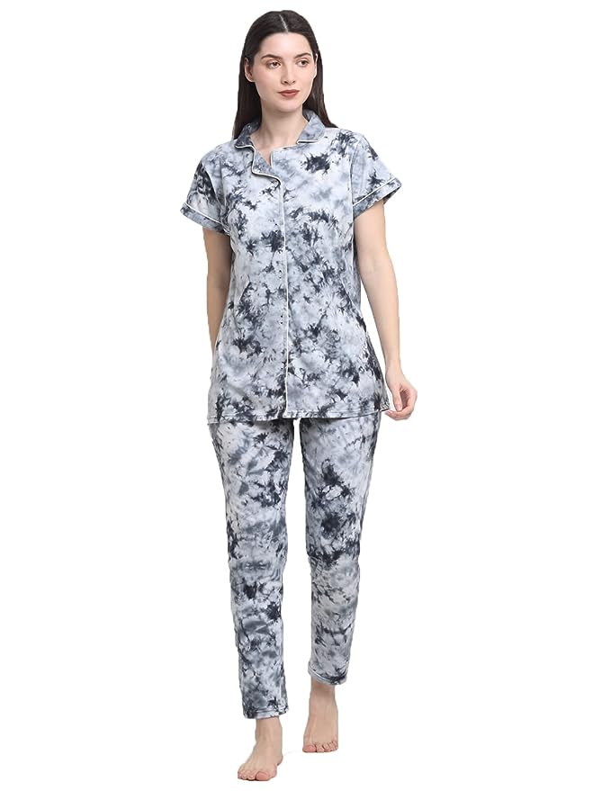 Wonderlady Cotton Nightsuit Set of Shirt & Pyjama Cloud Burst Tie-Die with Pockets | Creeva