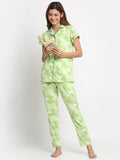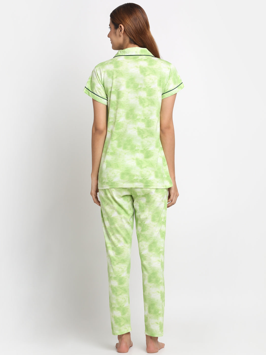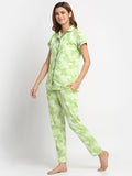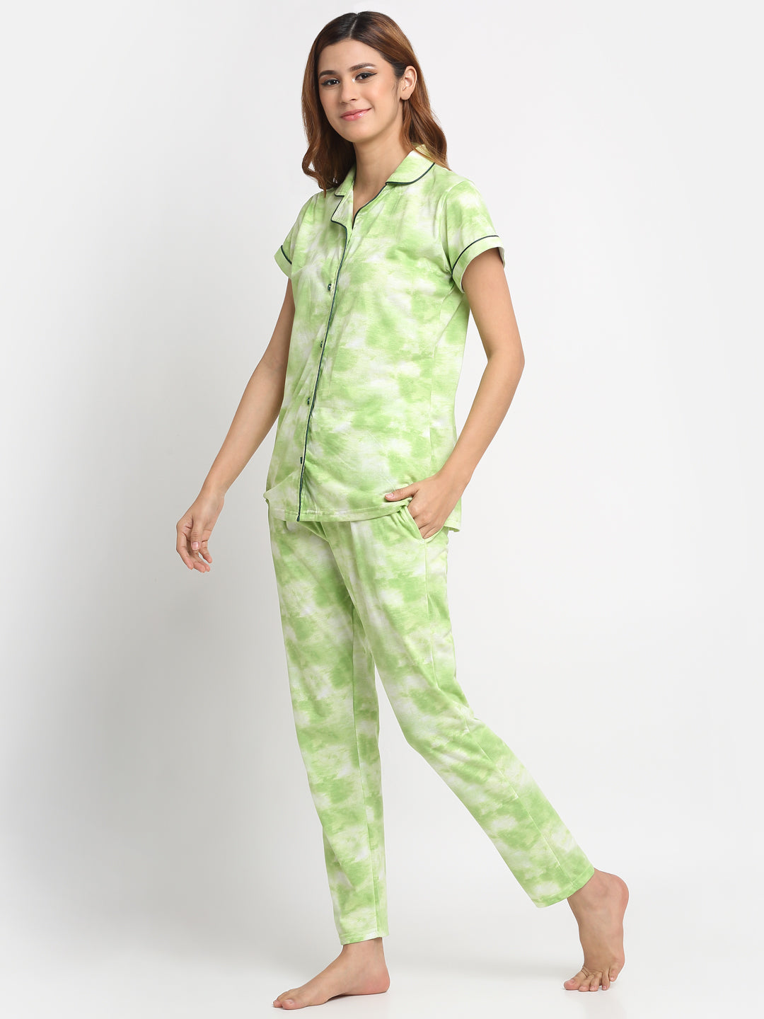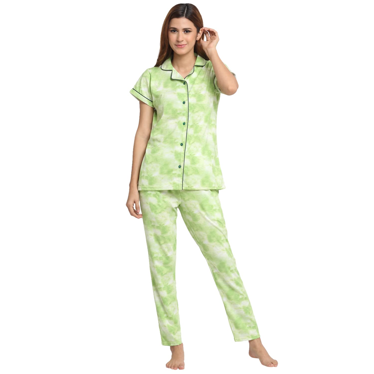 Wonderlady Cotton Nightsuit Set of Shirt & Pyjama Fresh Green Tie-Die with Pockets | Creeva