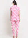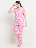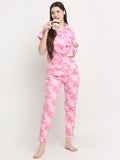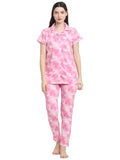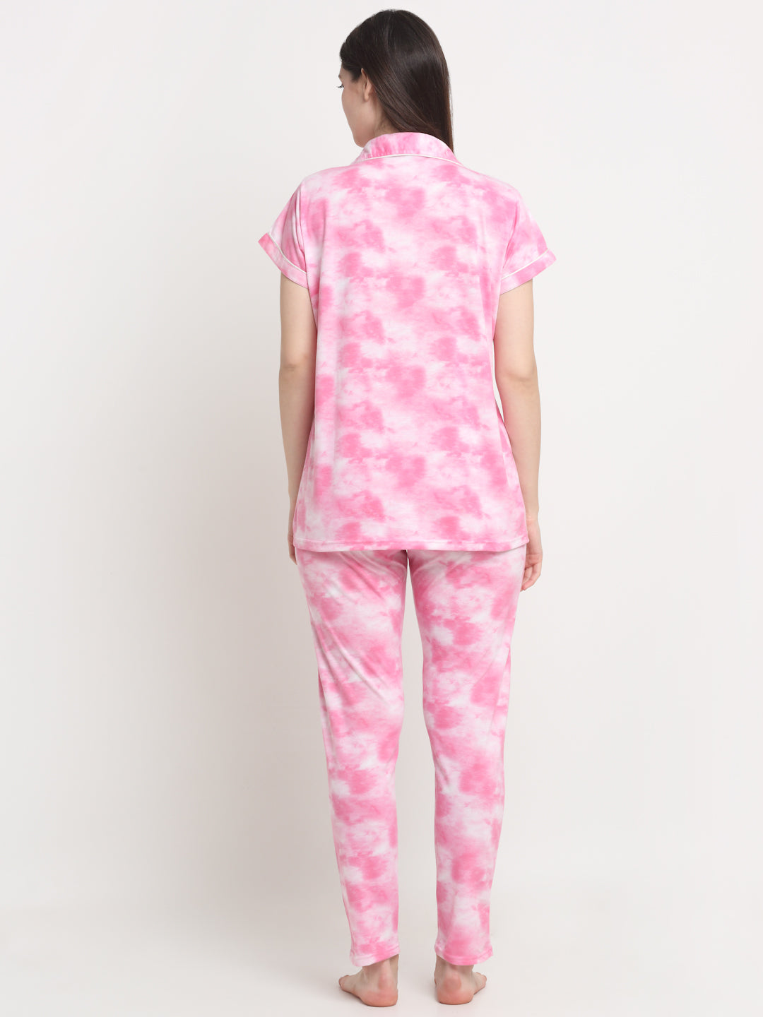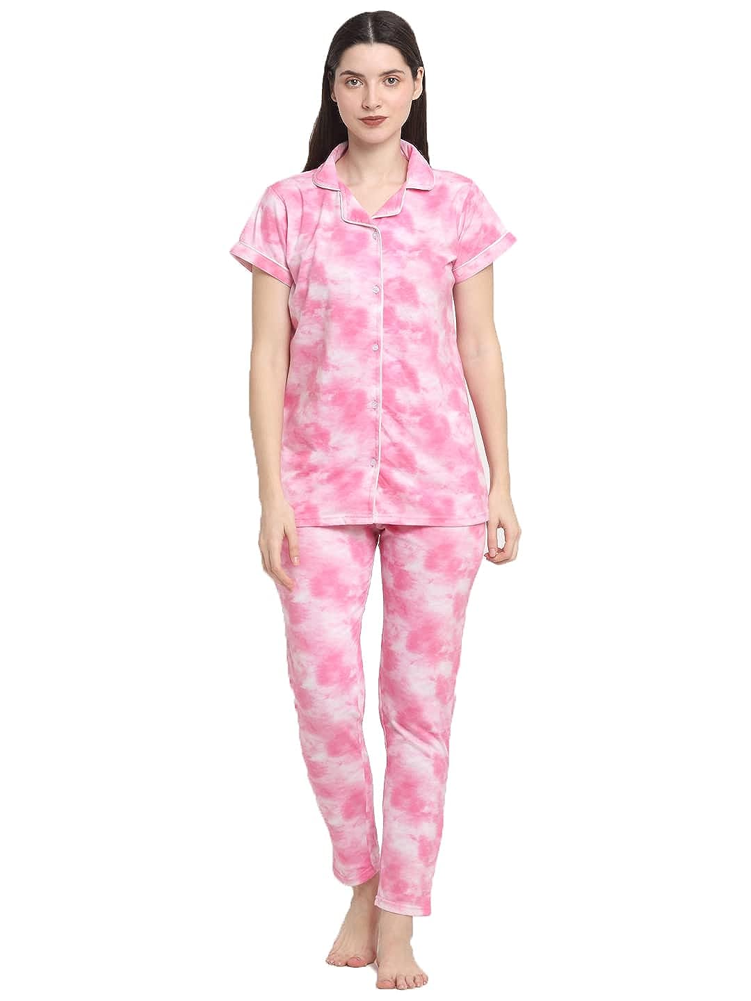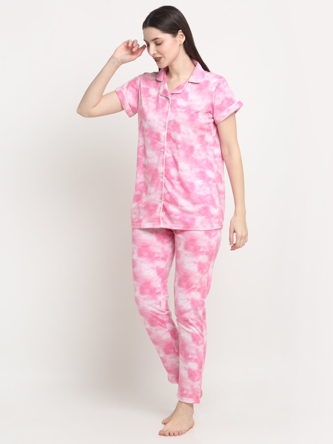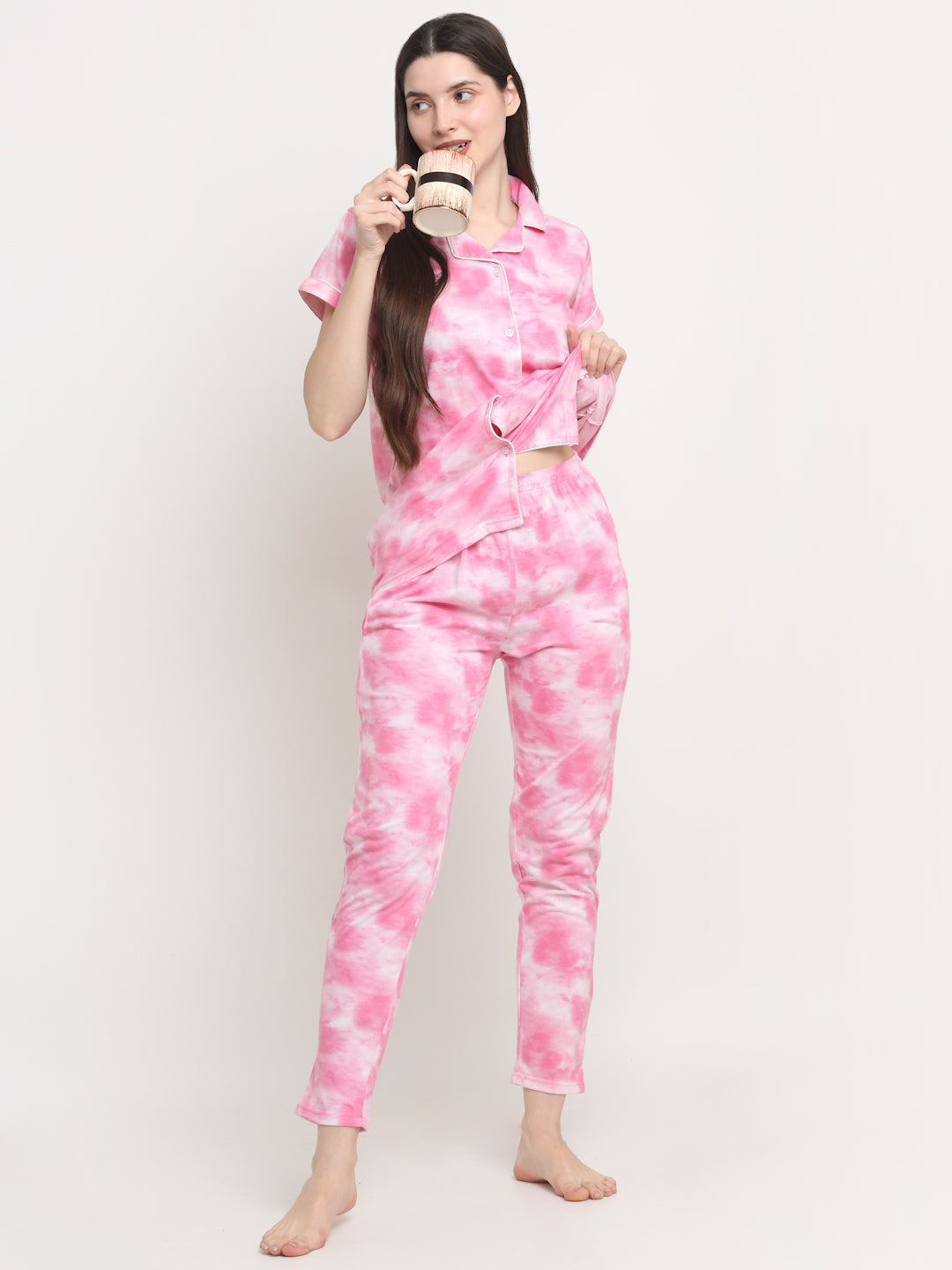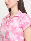 Wonderlady Cotton Nightsuit Set of Shirt & Pyjama Rose-Pink Tie-Die with Pockets | Creeva