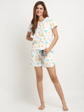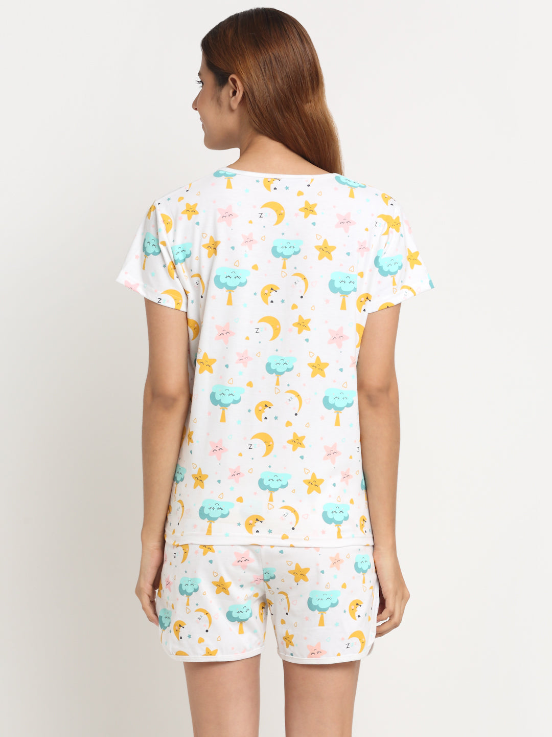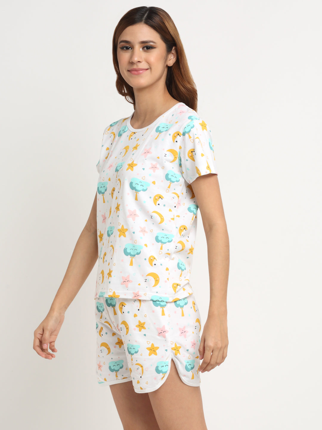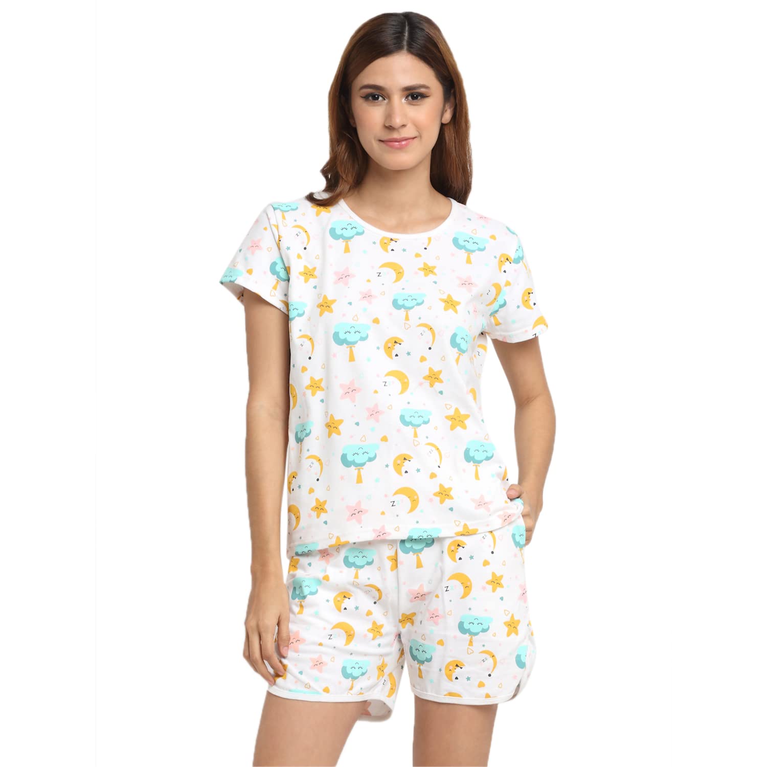 Wonderlady Cotton Nightsuit Set of Shorts & T-Shirt Starlight with Pockets Medium Size | Creeva