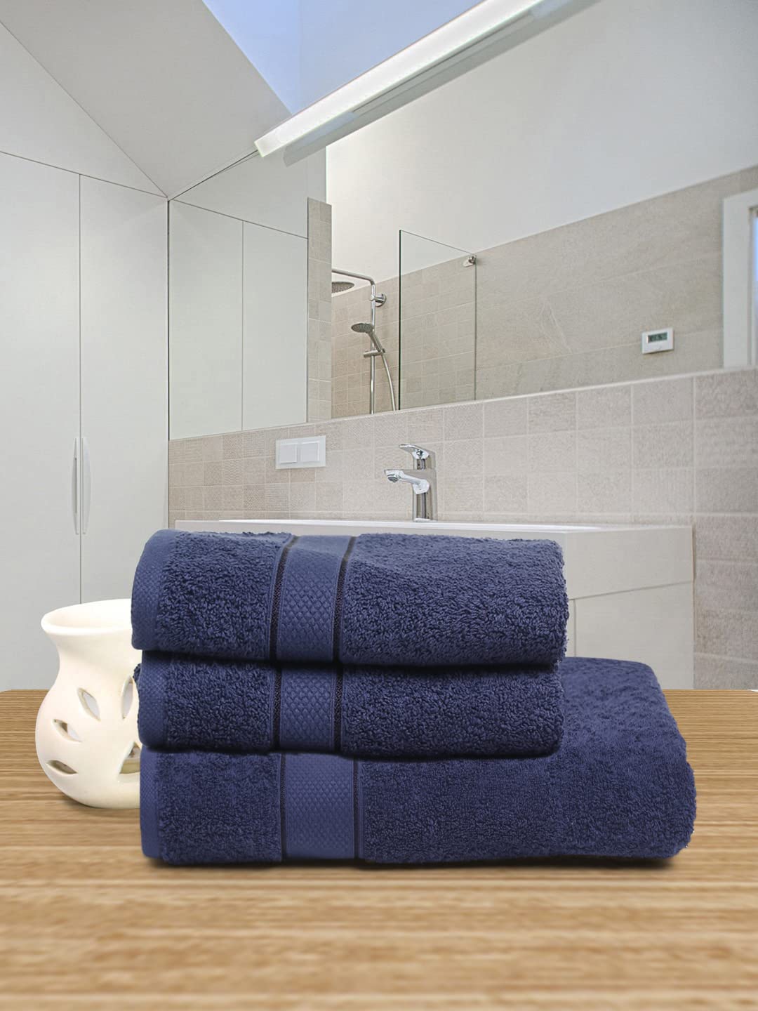 100% Cotton 3 Pcs Hand & Bath Towel Set, 525 GSM (Dark Navy)
